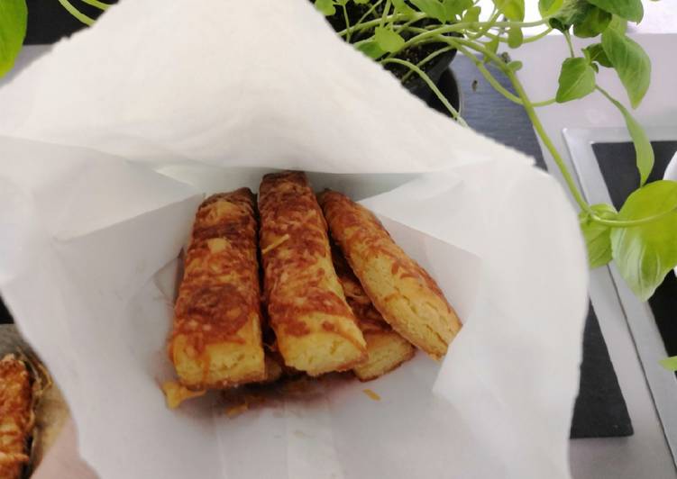 Én most kb. 1,5 cm vastagra nyújtottam, lekentem a tetejét 1 db felvert tojással. Az egyik felét megszórtam reszelt sajttal, a másikat szezámmaggal.