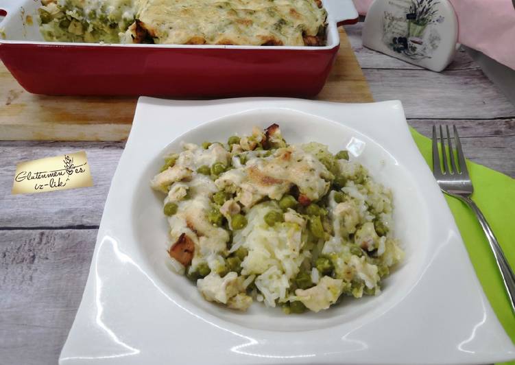 Ez az egytálétel rengeteg felé módon variálható. Most éppen rizzsel készítettem, de nagyon szeretjük tésztával és zöldborsó helyett zöldbabbal is.