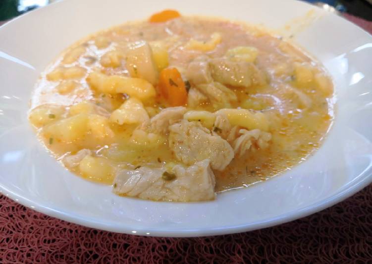 Ez egy nagyon egyszerű tárkonyos, húsos alapleves, egy csepp rizslisztes habarással. Gazdagíthatjuk ízlés szerint tetszőleges zöldségekkel.