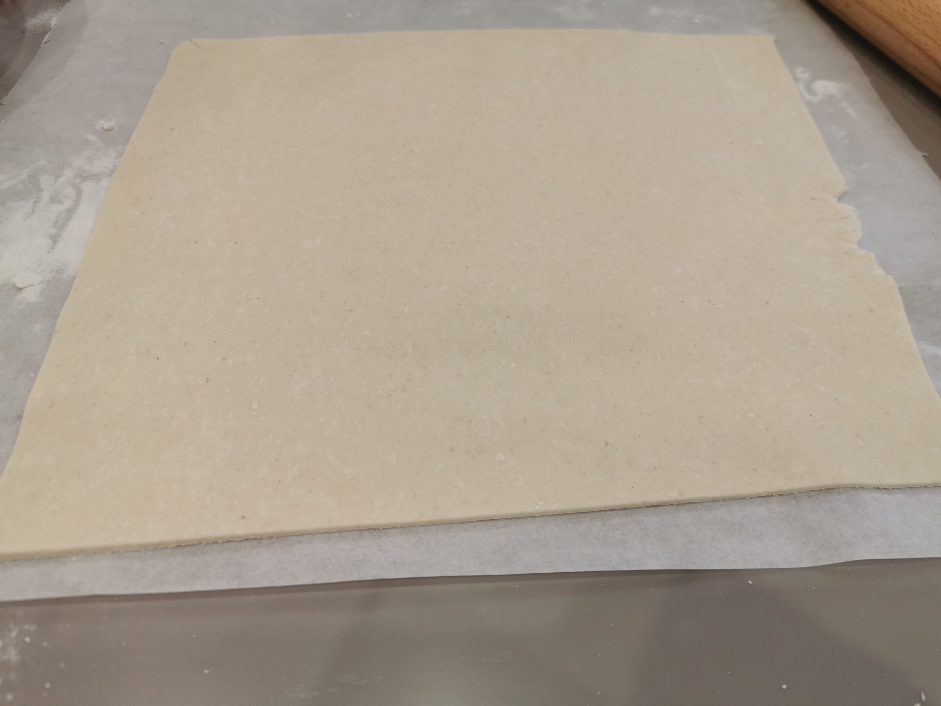 - Rizsliszttel megszórt felületen nyújtsuk ki olyan vékonyra, amennyire csak tudjuk.