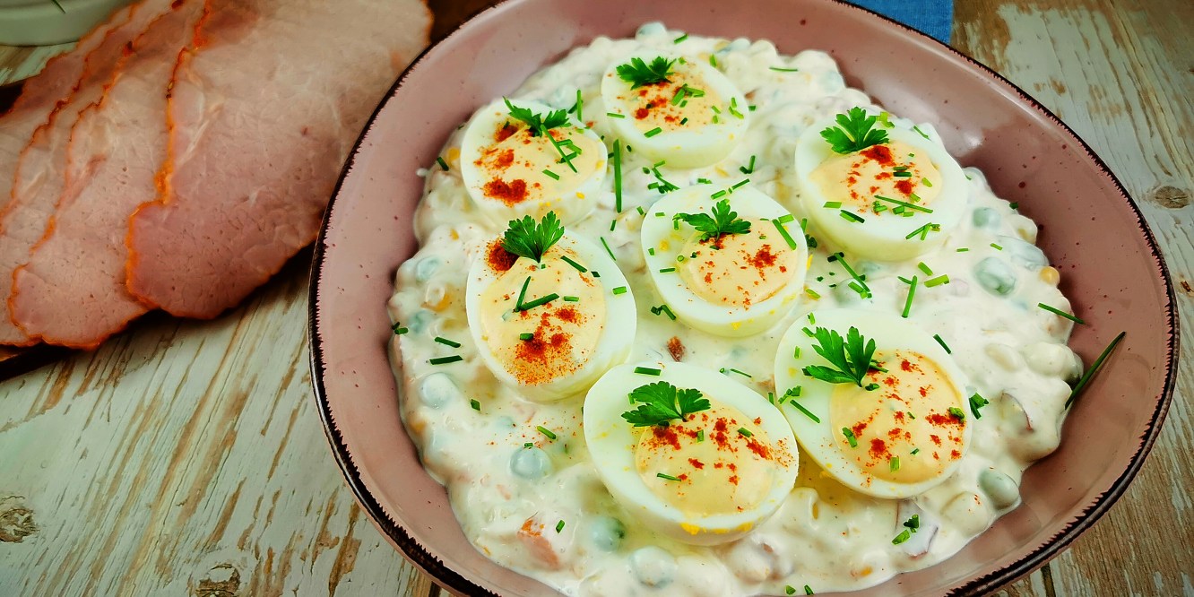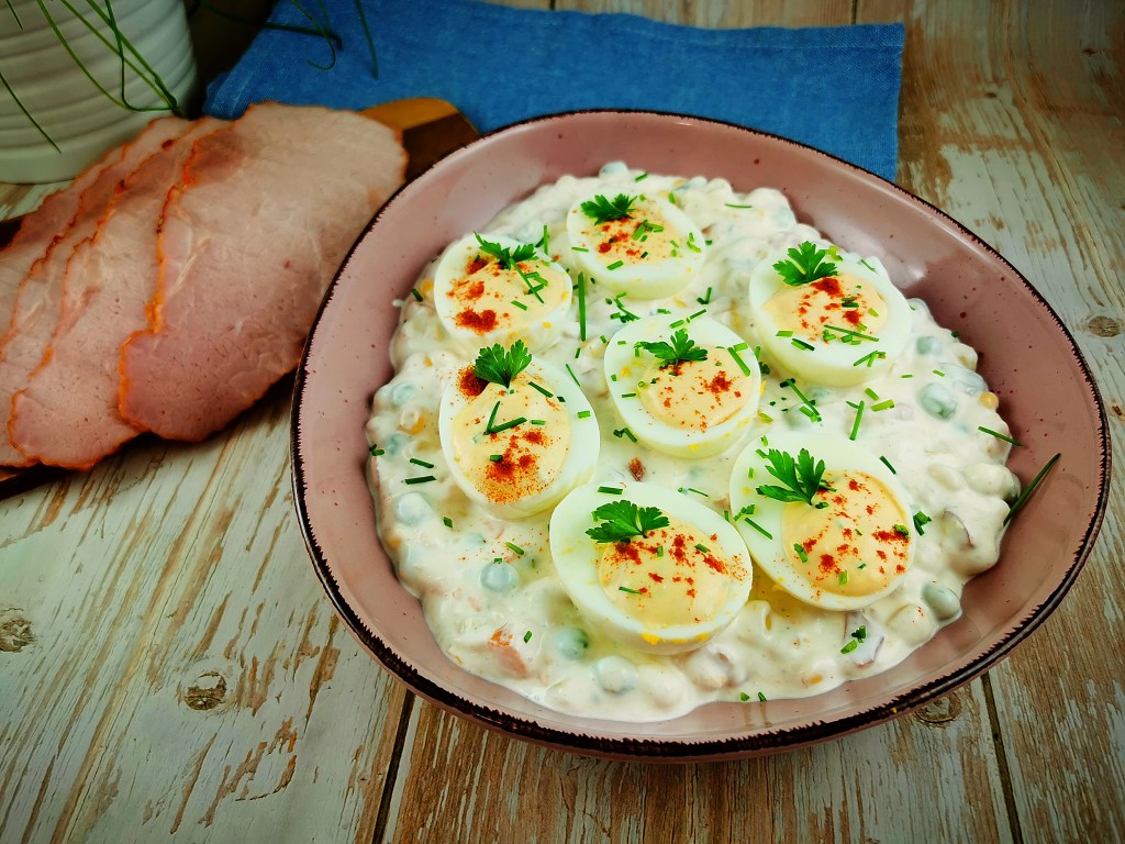 A klasszikus kaszinótojás bármelyik ünnepi asztal dísze és finom körete lehet. Mi nagyon szeretjük a húsvéti sonka mellé fogyasztani. Aki szereti a tormát, nyugodtan keverjen a tojásos krémbe egy kávéskanálkával, ezzel kissé pikánsabb ízvilágot kaphat. A töltött tojásokat érdemes valamilyen tejfölös, majonézes salátaágyra fektetni, így tálalásnál két legyet üthetünk egy csapásra. Én most egy mexikói zöldségmixet választottam ehhez, de nyugodtan készülhet franciasaláta körítés is hozzá.
