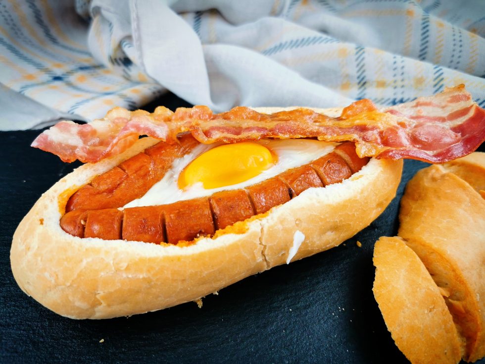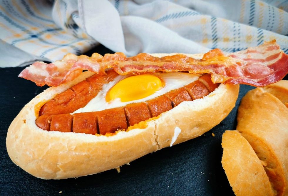Angol reggeliből lett brunch, avagy a későn kelők reggelije és ebédje.Imádom nézegetni a szebbnél szebb tradicionális angol reggeli fotókat. Egyik este épp erről beszélgettünk a lányommal, mire kitalálta, hogy másnap ebédeljünk reggelit. A mindent tegyünk egy tányérra megoldás helyett én inkább a mindent tegyünk a zsemlébe módszert választottam. A Pécsi Pékinas zsemle pontosan megfelel erre a célra, hiszen kellőképpen nagy, így jócskán lehet bele pakolni.Az előkészületekhez nem kell semmi más, mint egy darab serpenyő. A bacon sütés után visszamaradt zsíron süssük meg a virslit, majd ugyan ebben a serpenyőben melegítsük kissé át a paradicsomos babot.