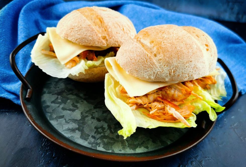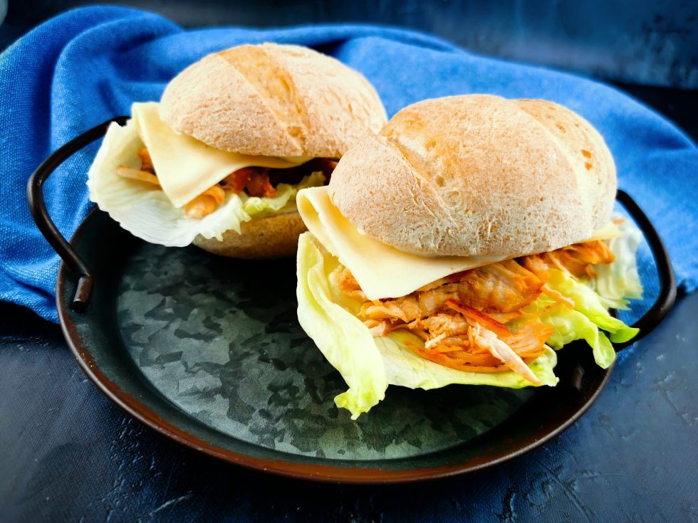 Azt hiszem ez minden idők legkirályabb szendvicse! Az igazi tépkedős húsos szendvics sertéshússal készül, de garantálom, hogy a csirkés változat sem marad el mögötte. Ráadásul sokkal gyorsabban elkészül és a sütőt sem kell bekapcsolni hozzá, mert lábosban sütve a tűzhelyen is pazar lesz az végeredmény. A Pécsi Pékinas zsemle önmagában is fantasztikus, de ezzel a hússal igen laktató ebédet készíthetünk vele.