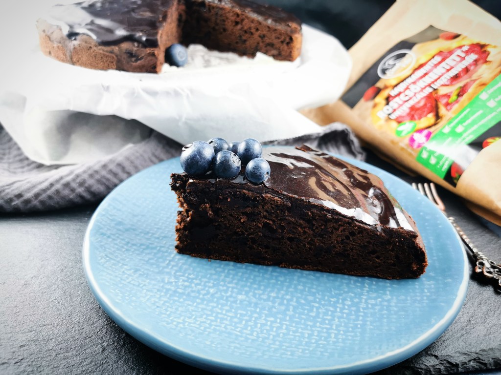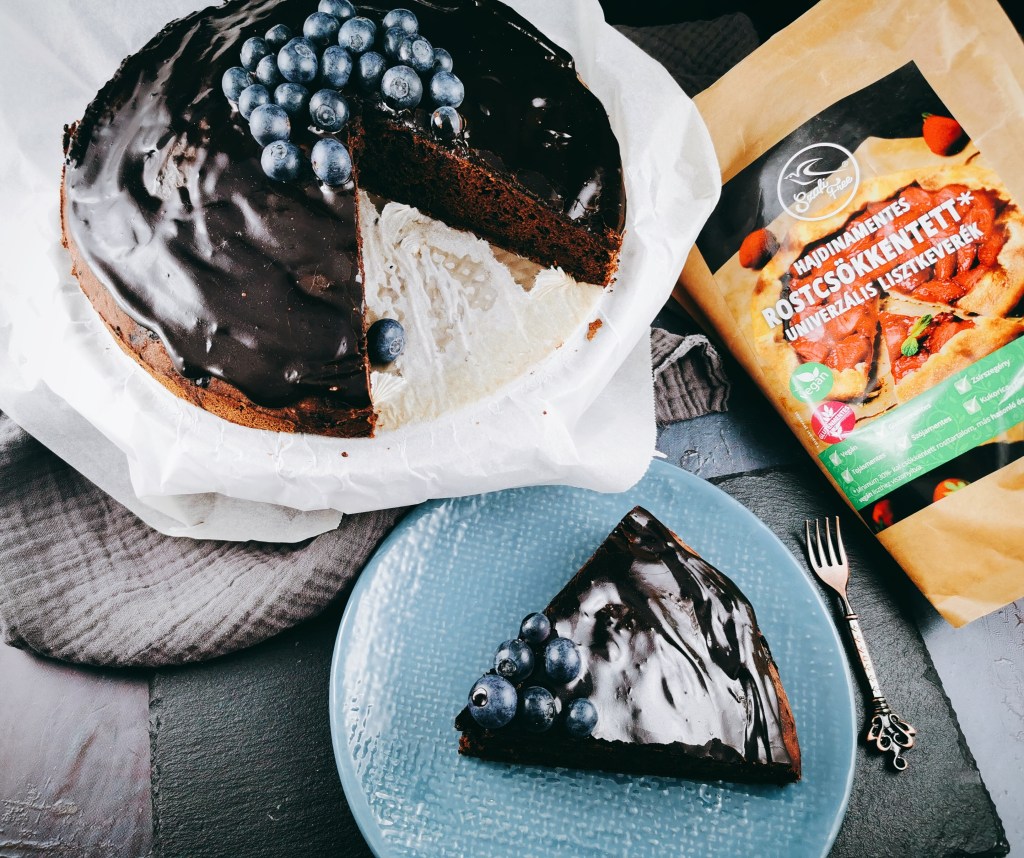 A sütemény alapja a Szafi Free hajdinamentes, csökkentett rostartalmú univerzális lisztkeverék. Ebből a lisztből aztán tényleg mindent el lehet készíteni. Maga a sütemény a világ legegyszerűbb tésztája: egyetlen keverőtál és egy kézi habverő szükséges hozzá. Az áfonya és a csoki brutálisan jól illenek egymáshoz, a tésztája puha és szaftos. A ragacsos csokimáz pedig csak hab a tortán. Durva fejszámolást végeztem (mert egy matek tanár mindig is számol) és arra jutottam, hogy 1 szelet ebből a sütiből bőven 100 kalória alatt van. Édes boldogság 🙂