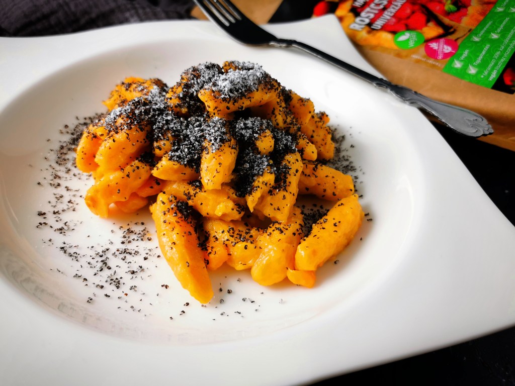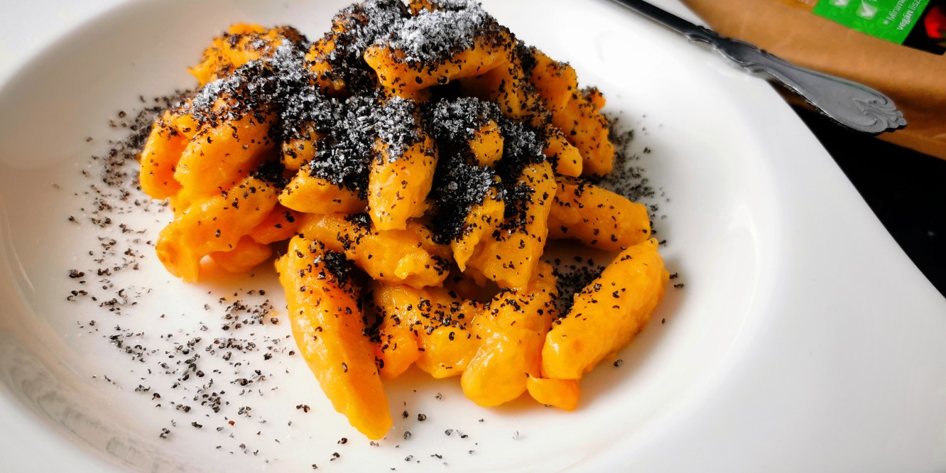 Az édesburgonya és a mák tök jól illenek egymáshoz, de aki nem rajong a mákért, forgassa nyugodtan a főtt nudlit gluténmentes zsemlemorzsába, kókuszba, de forgatás nélkül tökéltes köret is lehet. Sőt, mivel a tészta fantasztikus állagú, nyugodtan formázhatunk belőle gombócót és megtölthetjük a kedvenc gyümölcsünkkel.