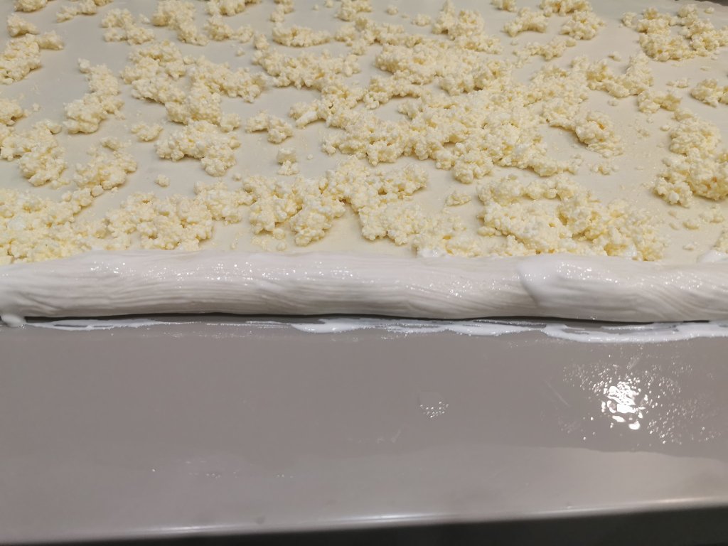 ●A töltelékhez keverjük össze a túrót, a tojásokat és a sót.