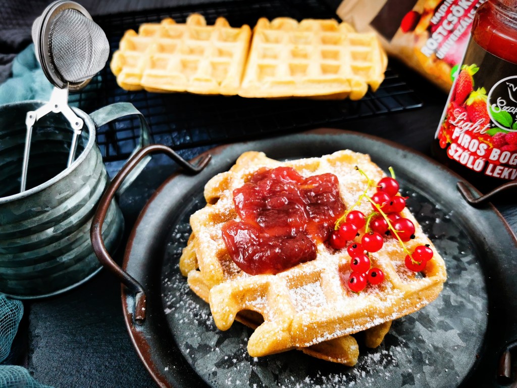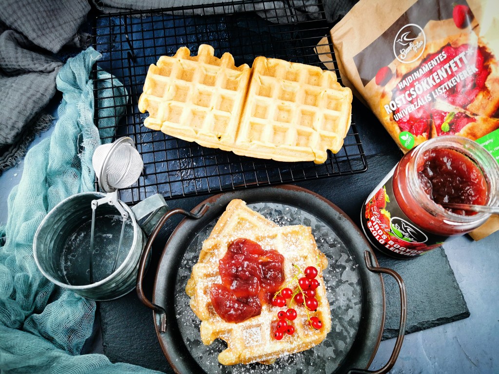 - Kb. 2 evőkanálnyi tésztát tegyünk a gofrisütőbe és süssük aranybarnára. A megsült gofrit szedjük rácsra és várjuk meg, hogy legalább langyosra hűljön. Forrón a gofri puha, ahogy hűl, úgy válik ropogóssá.
