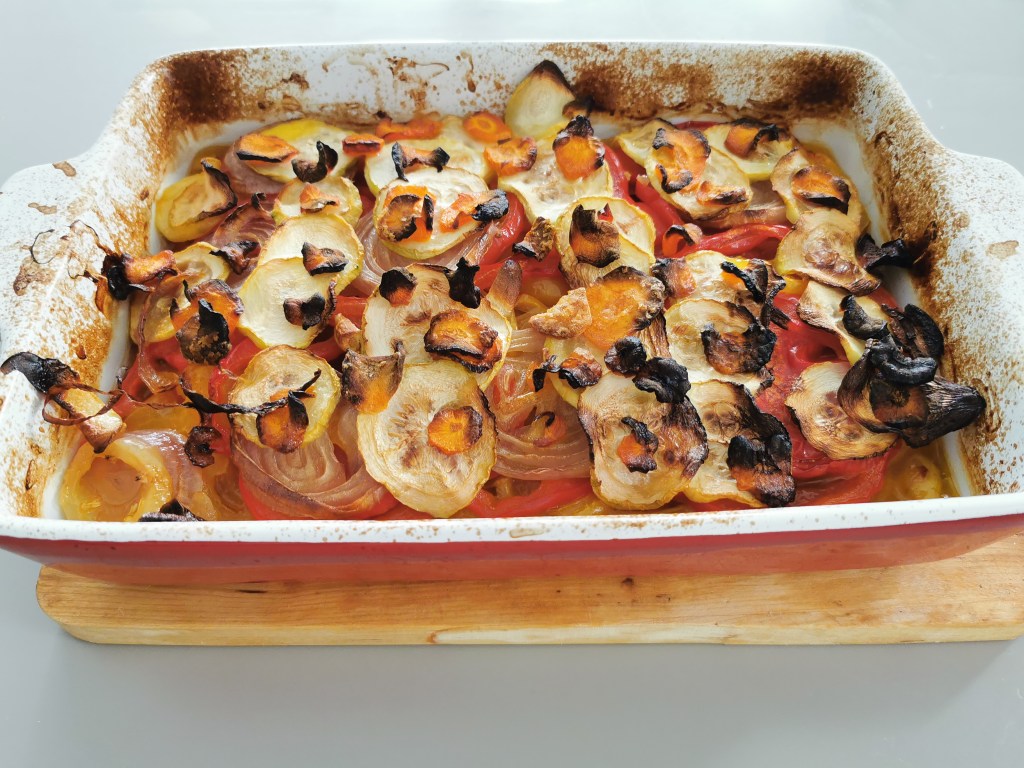 Ezt a sült zöldségkérmet igazából ízlés szerint variálhatjuk, beletehetjük a kedvenc zöldségeinket és fűszerezhetjük ízlés szerint.