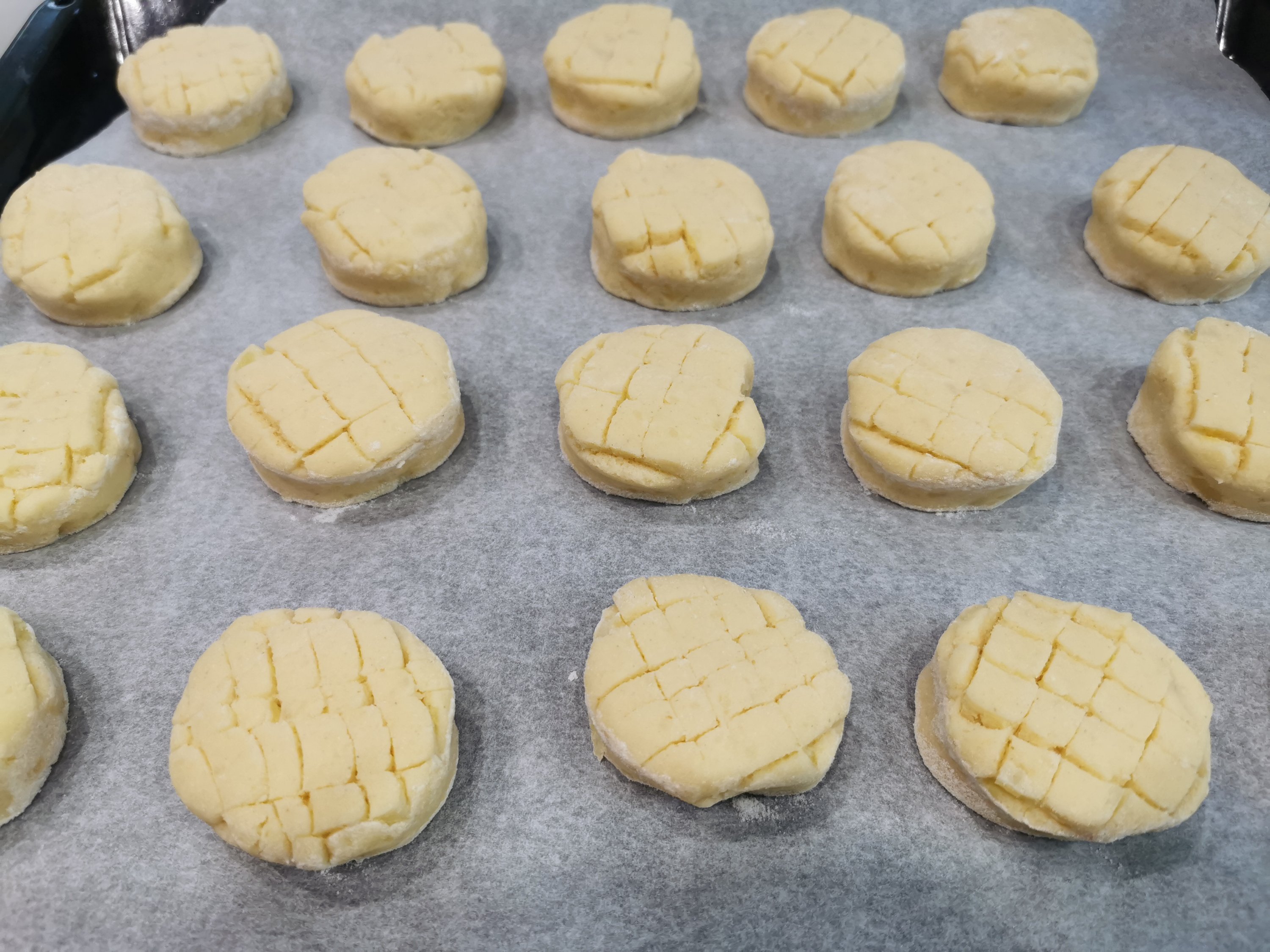 - Éles késsel rácsozzuk be a tetejét és szaggassuk ki pogácsa szaggatóval.