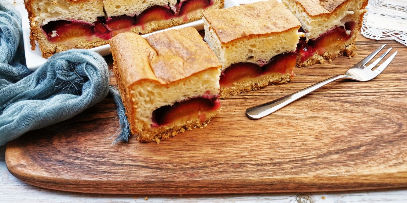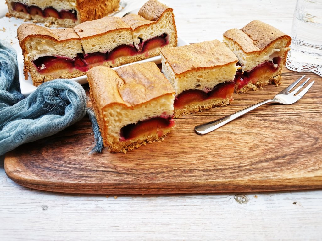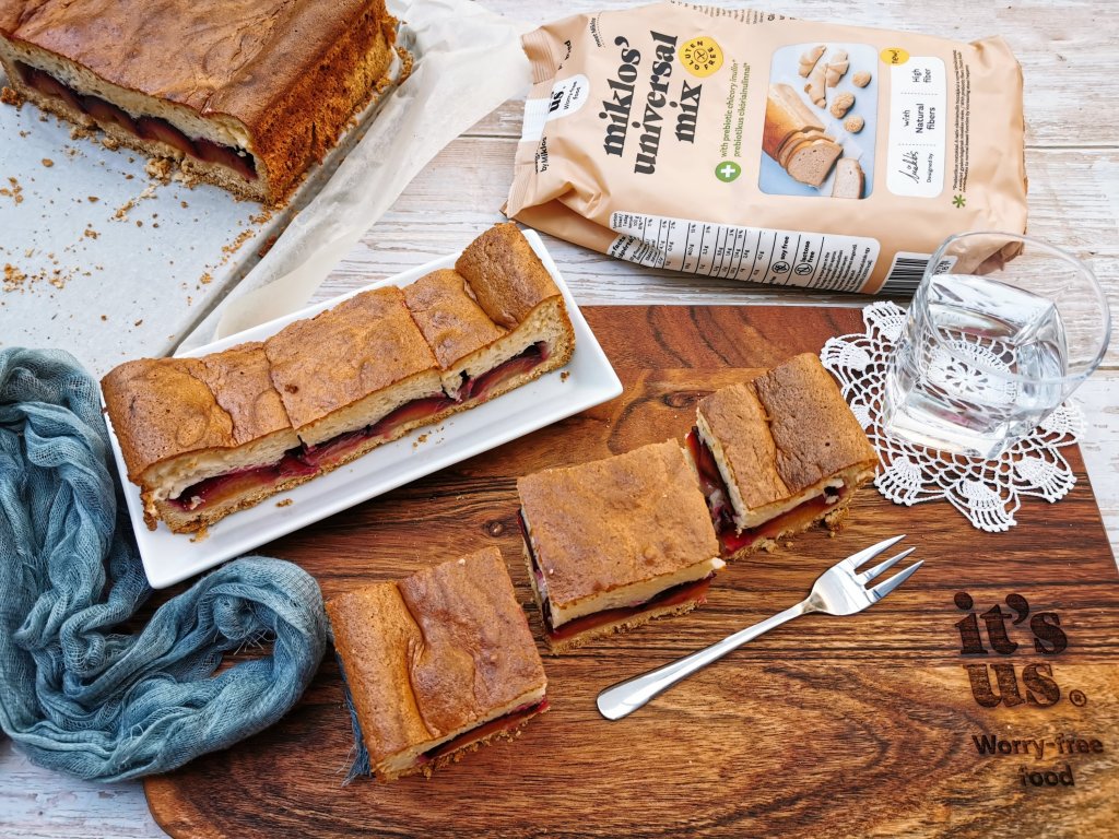 Ennek a szilvás sütinek az alapja egy nagyon egyszerű linzer tészta, a teteje pedig egy piskóta jellegű, kevert tészta. A teteje a lányom szerint olyan, mintha egy nagy felhőben harapna az ember.