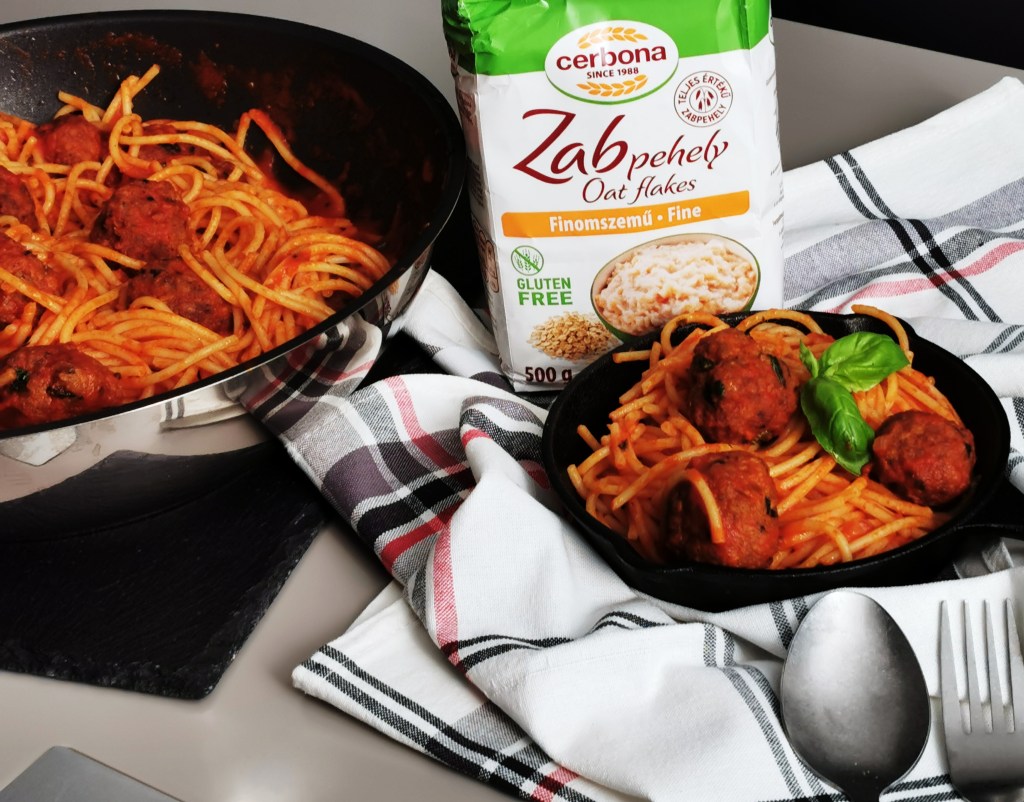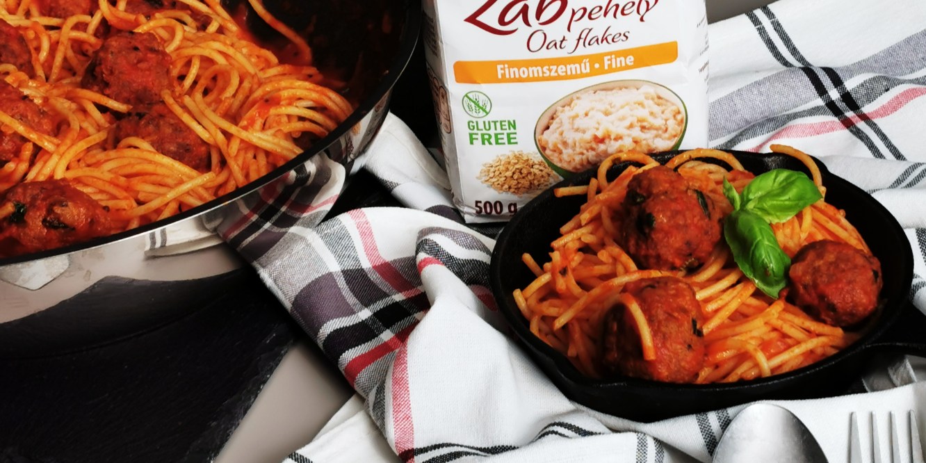 Nálunk a család egyik kedvenc étele ez a paradicsom szószos spagetti húsgombócokkal. A húsgombócokba a darát hús mellé gluténmentes zabpelyhet szoktam tenni az áztatott kenyér, zsemle helyett. Ezzel a módszerrel készíthetünk nyugodtan hagyományos fasírtot is.
