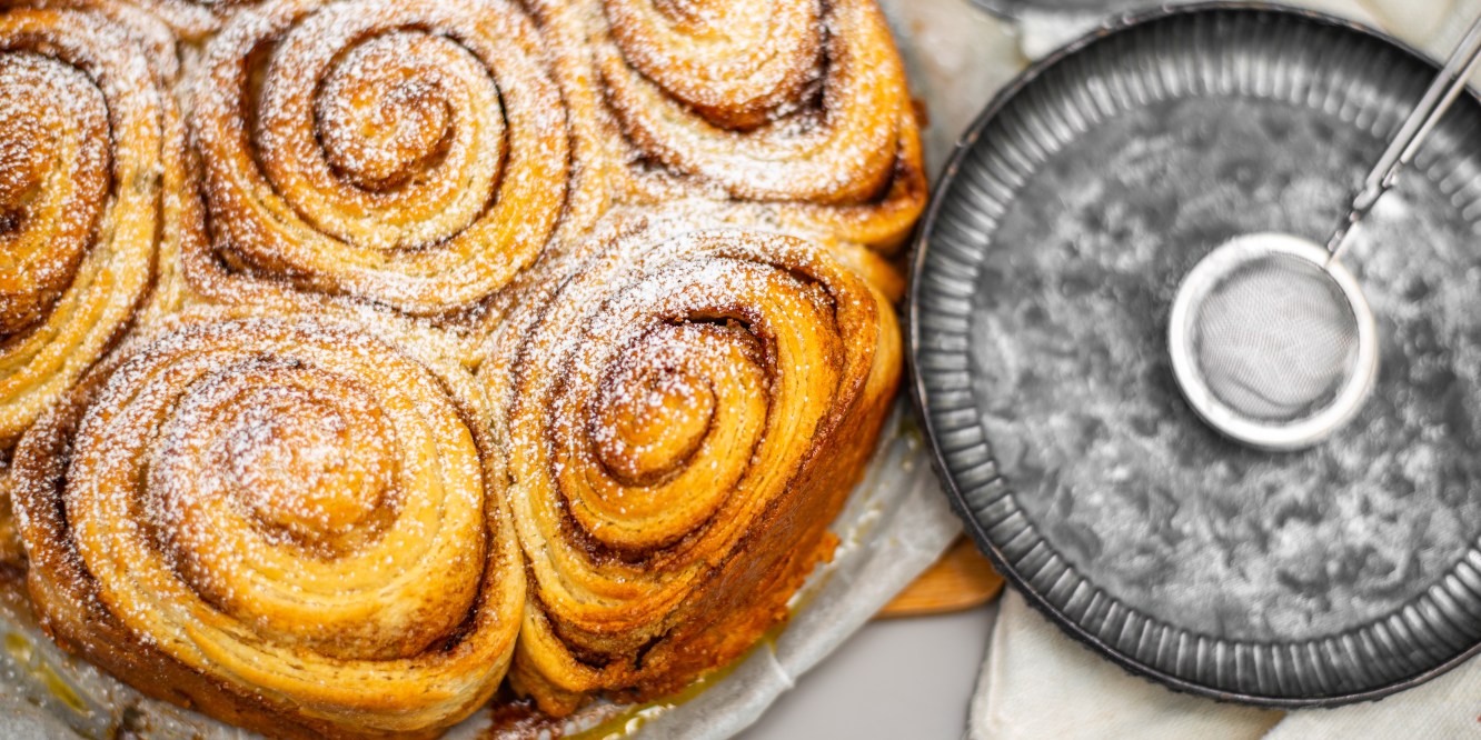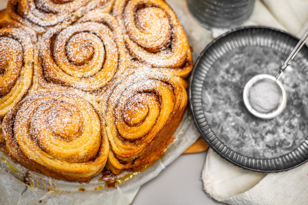 Ez a fahéjas csiga egy kicsit más technikával készül, mint általában megszoktuk. A tésztája kelesztés után kapott egy kis hajtogatást, a formálásnál pedig töltött tészta csíkokat tekertünk fel. Így kaptuk ezeket a gyönyörű, hatalmas csigákat. Természetesen fahéj helyett készíthetjük akár kakaóval is.