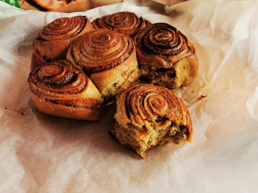 Ezek a csiguszok hihetetlen finomak lettek. A tésztával szuper könnyű és egyszerű dolgozni, nem ragad, könnyen tekerhető, a végeredmény mégis pihe-puha. A banán, az alma tökéletes kiegészítője a fahéjas töltelék.