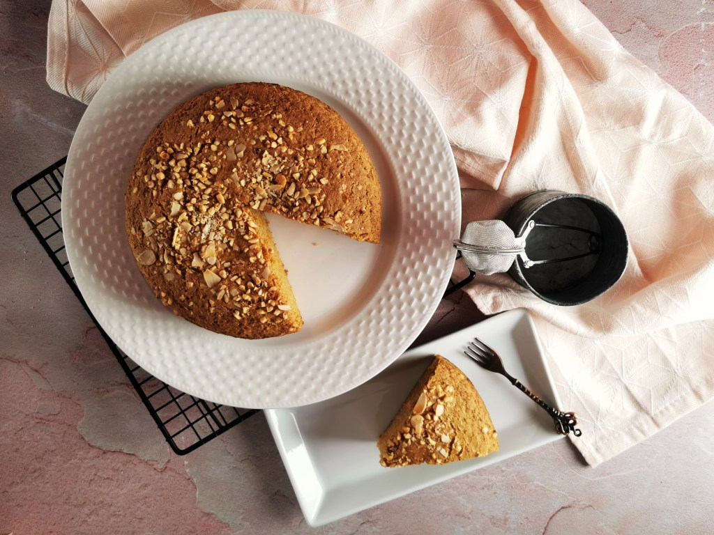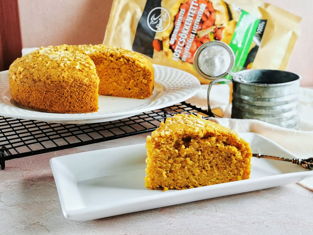 - A tetejét ízlés szerint szórjuk meg aprított mogyoróval, szeletelt mandulával és 180 fokra előmelegített sütőben kb. 40 perc alatt süssük készre.
