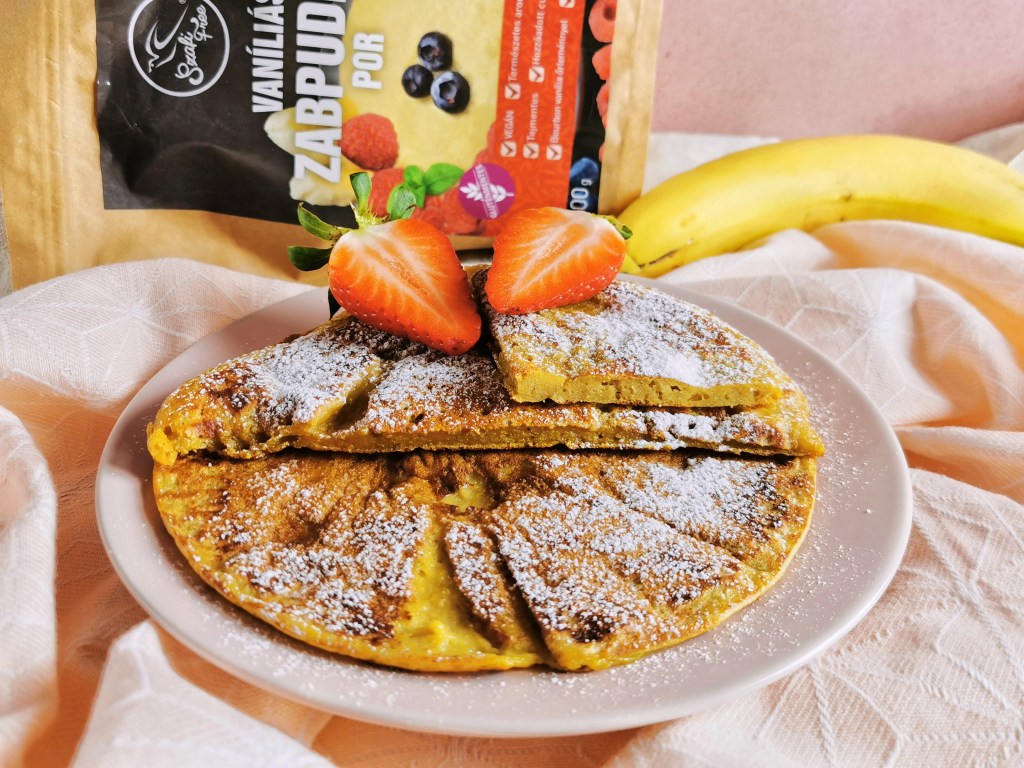 A kamaszom imádja a Szafi Free vaníliás zabpudingot és a banános palacsintát is, így gondoltam összehozom a kettőt. Az elkészítése 5 percet vesz igénybe, megenni viszont még ennyi ideig sem tart. A rohanó hétköznapokon is kitűnő reggeli lehet belőle.