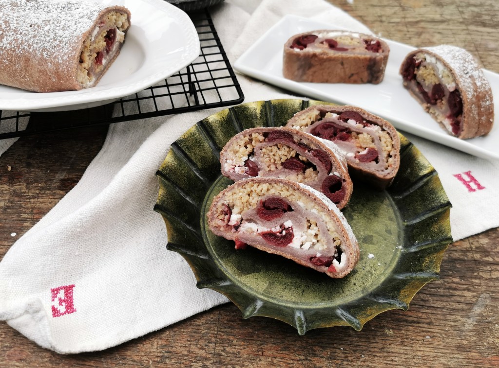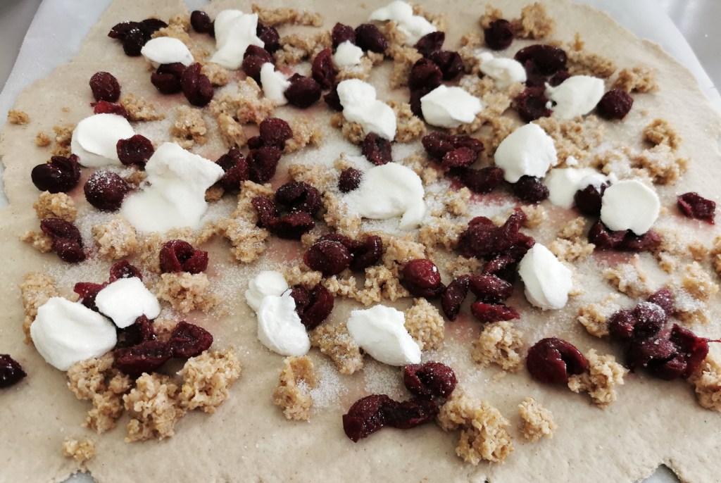 - Oszlassuk el rajta a megfőtt és lehűtött zabdarát, szórjunk rá ízlés szerint meggyet. Teáskanál segítségével tegyük rá kis halmokban a növényi tejfölt, szórjuk meg ízlés szerint eritrittel vagy cukorral és a hosszabbik oldala mentén tekerjük fel.