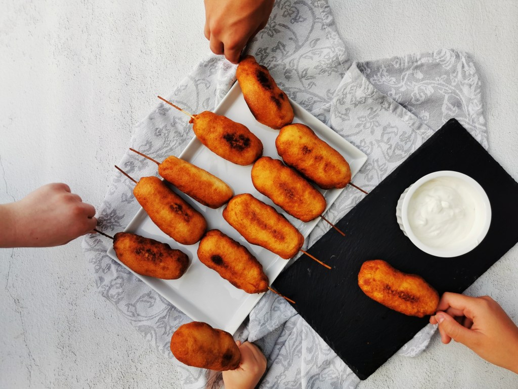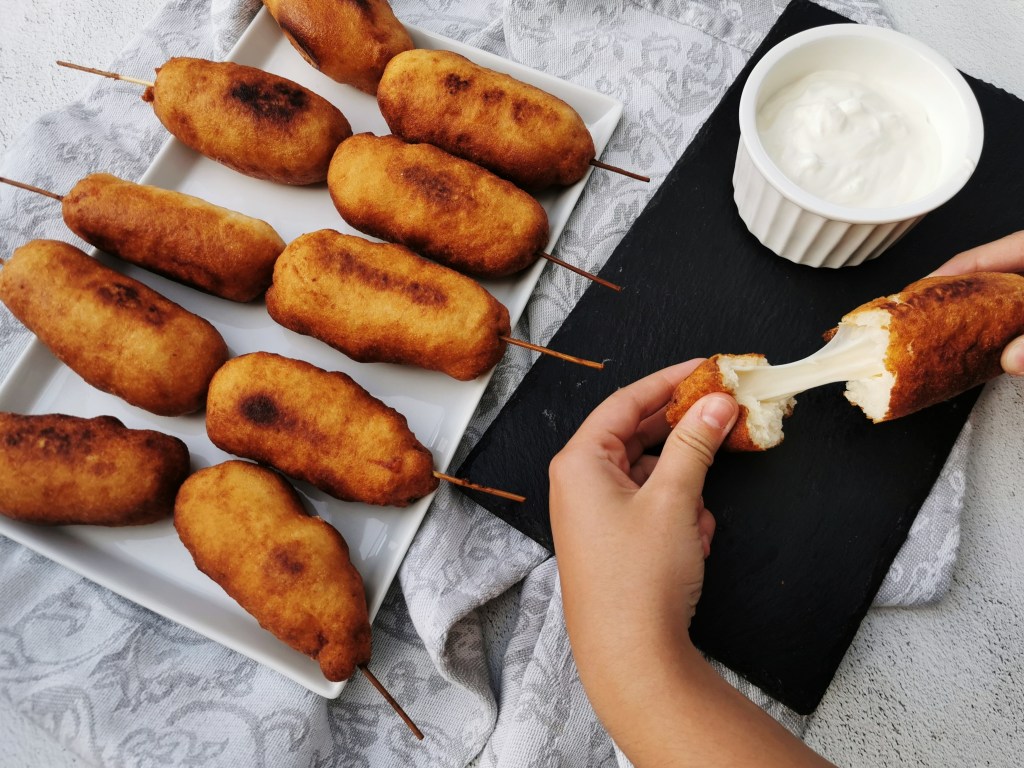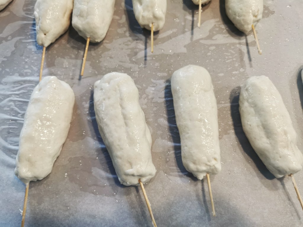 - A sajt rudakat szúrjuk hurkapálcára és csomagoljuk a tésztába.