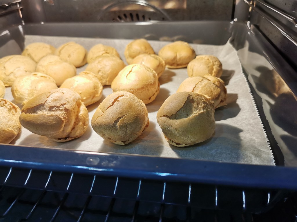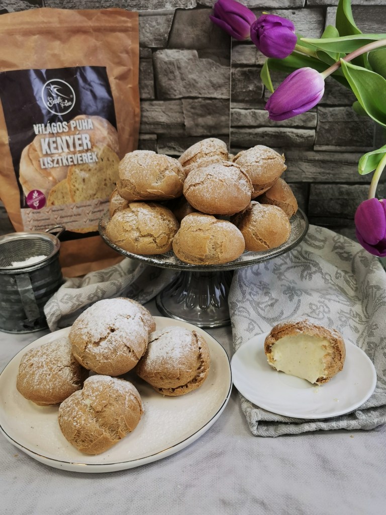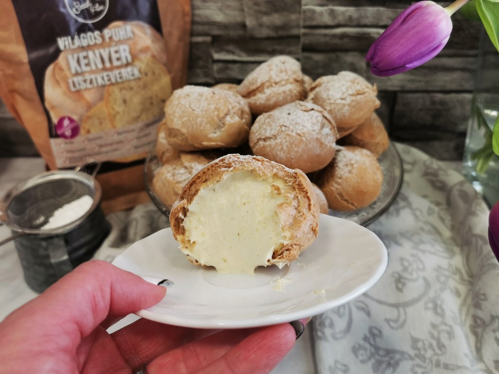 Ahogy kinyomtam a habzsákból a kis tészta halmokat a sütőpapírra, eszembe sem jutott, hogy ezek ekkorák lesznek. Simán lehetett volna belőle hagyományos módon töltött képviselőfánk, de mi már a profiterolra voltunk rákészülve, szóval több falatos falatkák lettek brutál dózisú krémmel töltve. Talán ez az igazi dolce vita… Szerintem. És a kamaszom szerint, aki azt mondta, hogy na ebbe pont bele tudna fulladni. Szerintem a fotókon látszik a tészta és a krém aránya.
