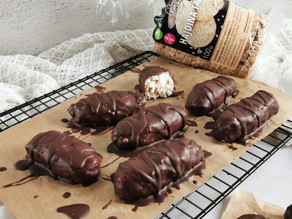 - A puffasztott hajdinát morzsoljuk apró darabokra.