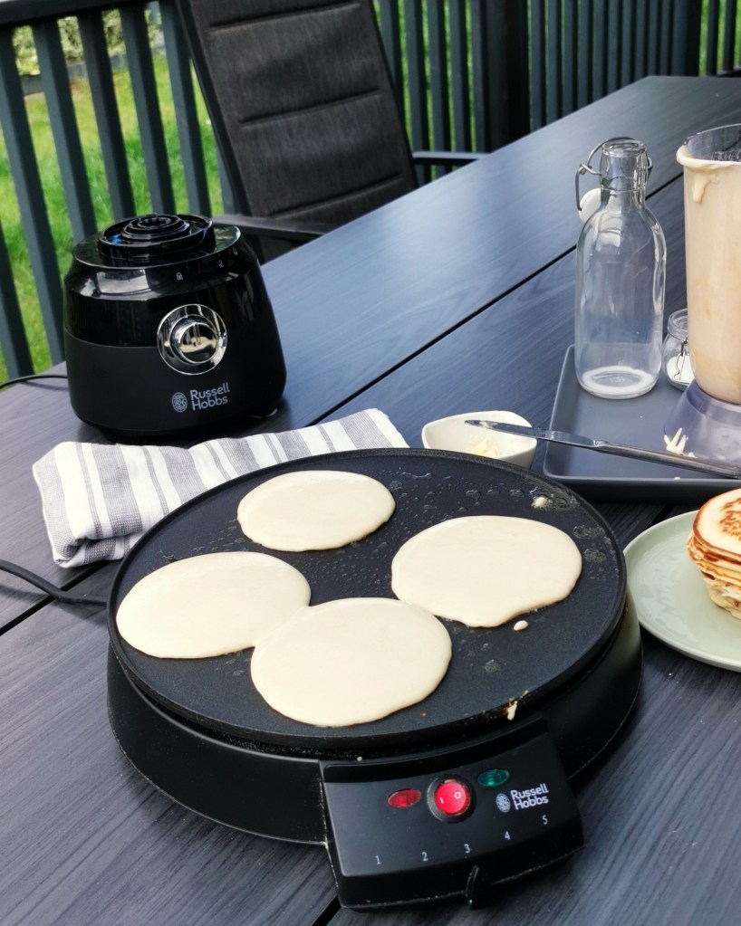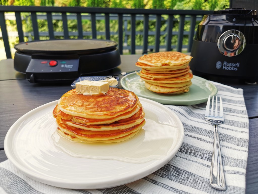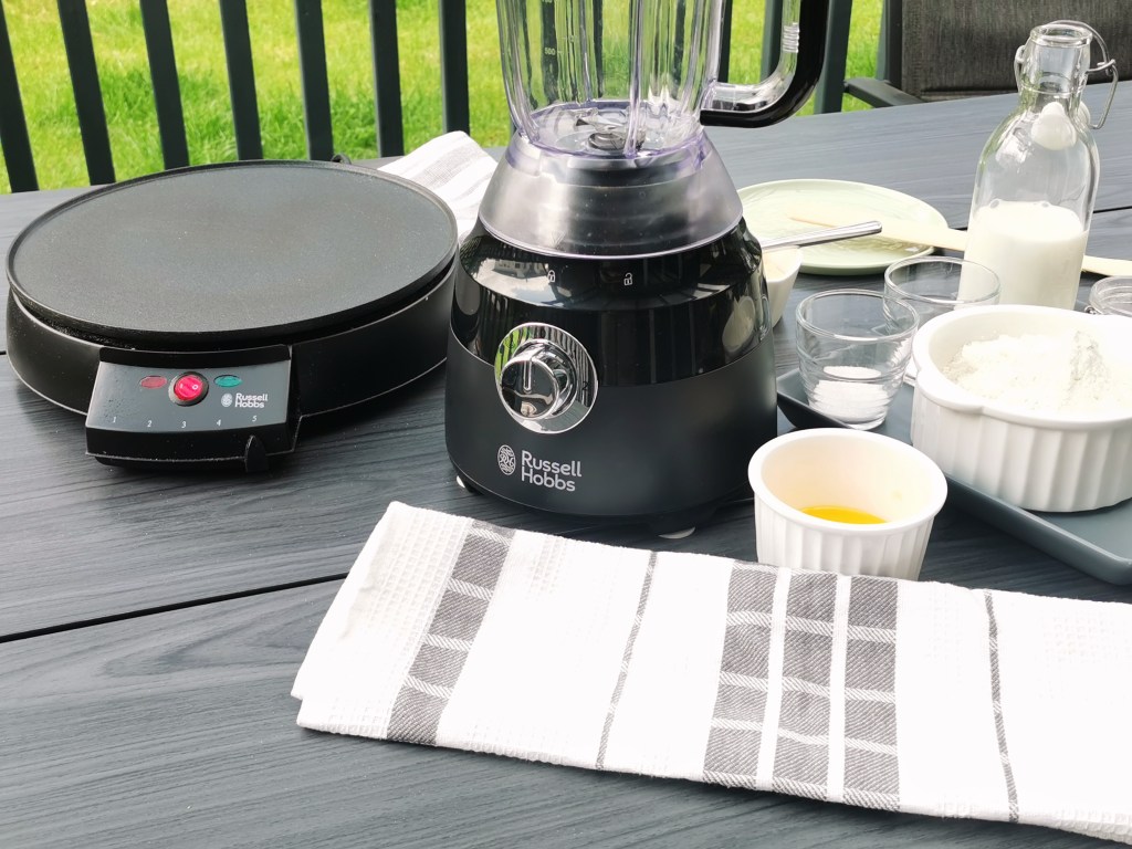 Én a tészta elkészítéséhez a Russel Hobbs Matte Black konyhai robotgépet használtam. A tészta hozzávalóit csak a megfelelő sorrendben bele kell tenni és gyors turmixolás után garantáltan csomómentes, csodálatosan egynemű, selymes tésztát kapunk. A tésztát pedig egyenesen a turmixból önthetjük is a meleg palacsintasütőre. Ezzel rengeteg időt és mosogatni valót spórolhatunk meg.