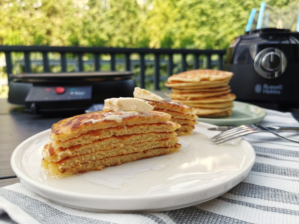 Sok éve sütöm a palacsintát, a tortilla lapokat elektromos palacsintasütőn. Az évek során pár gépet kipróbáltam már. Van, ami egész jól bírta, de akadt olyan is sajnos, ami 3 sütés után felmondta a szolgálatot és leragadt a tészta. A Russell Hobbs Fiesta palacsintasütőt már hónapok óta használom és igen jó választásnak bizonyult, tökéletesen bevált. A felülete a sok használat közben sem sérül, pedig eskü nem kímélem. A hagyományos, vékony tésztás palacsintán kívül süthetünk rajta ilyen apró, buci amerikai palacsintát, tortilla lapokat és tojást is.