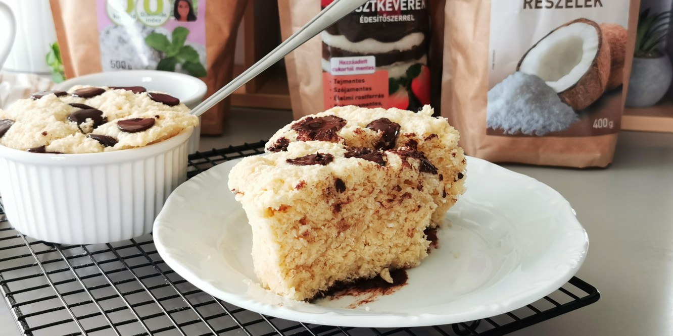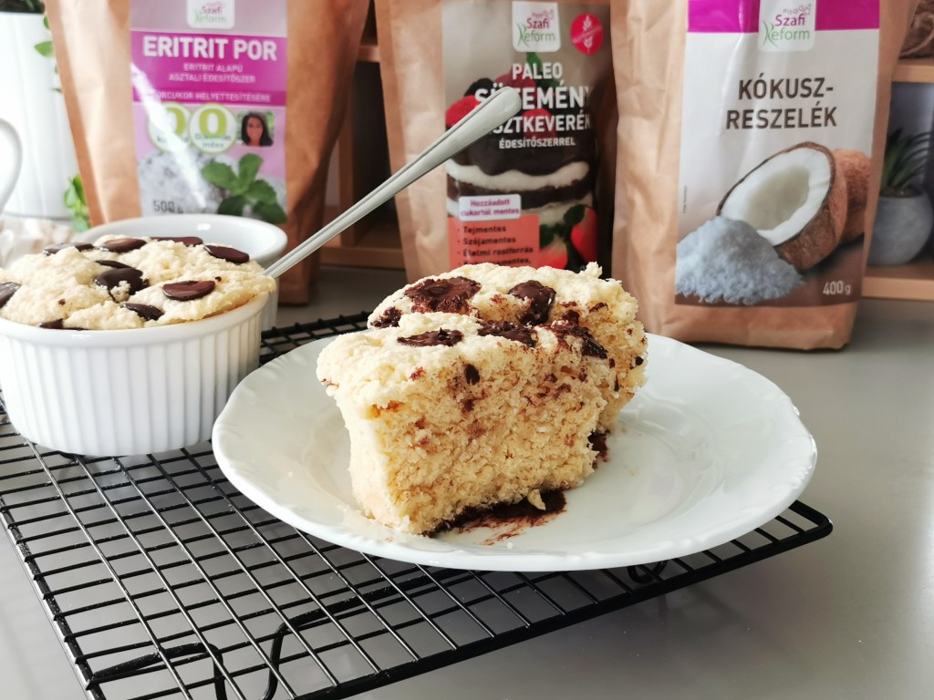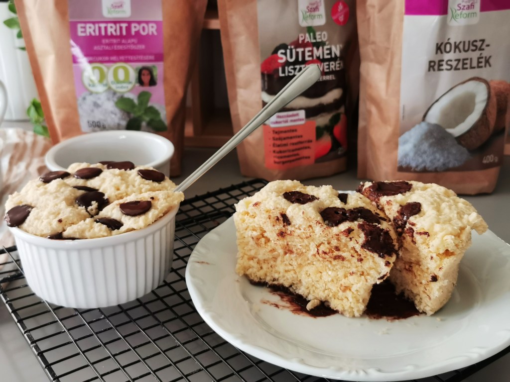 A napokban készítettem egy kakaós kevert tésztát mikrohullámú sütőben. Már akkor tudtam, hogy az az alap rengeteg fenséges desszerthez lesz tökéletes. Most elkészült a kókuszos, csokicseppes változata is.
