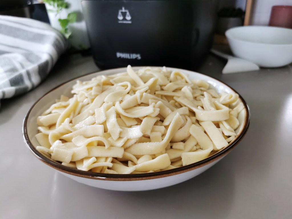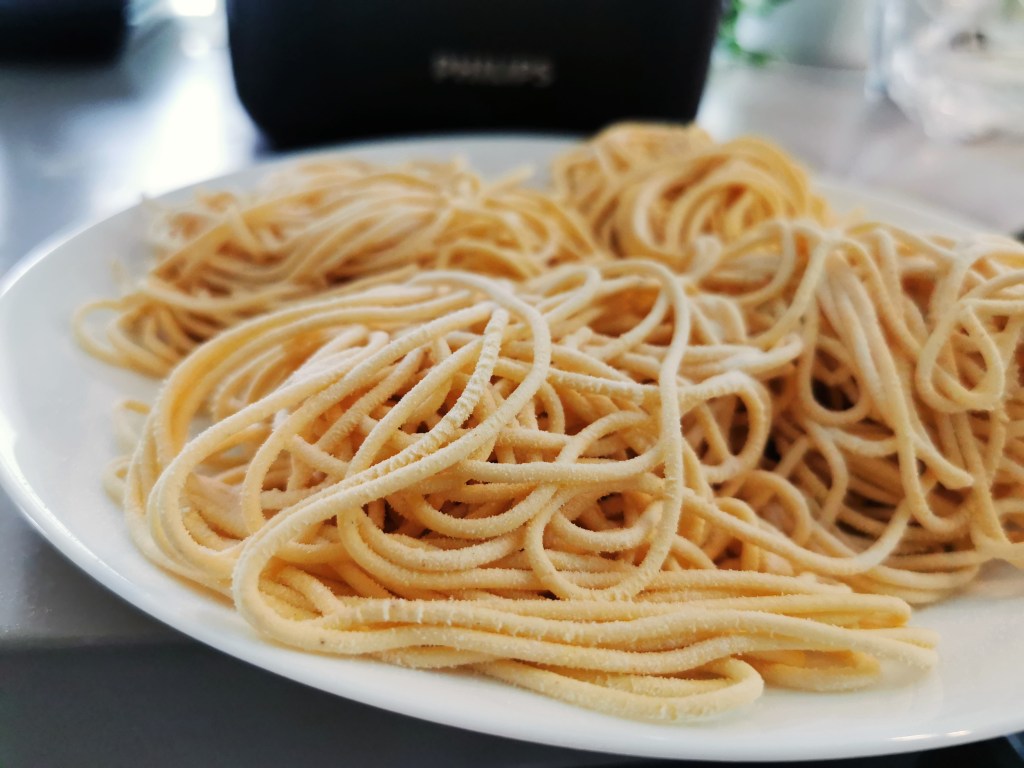 Mikor először próbáltam ki a Philips tésztagépet egyszerűen nem hittem a szememnek. Alaposan áttanulmányoztam a használati útmutatót és igyekeztem nem túltolni a folyadékot, hogy valóban morzsás állagú tésztát keverjen a gép. Álmomban sem gondoltam volna, hogy a morzsákból valóban tészta fog kijönni a gépből.
