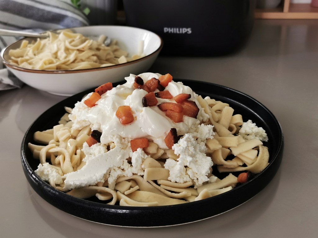 Ezt a receptet kipróbáltam lasagne és cérnametélt, valamint spagetti tésztának is. Ma pedig túrós tészta kerekedett belőle.