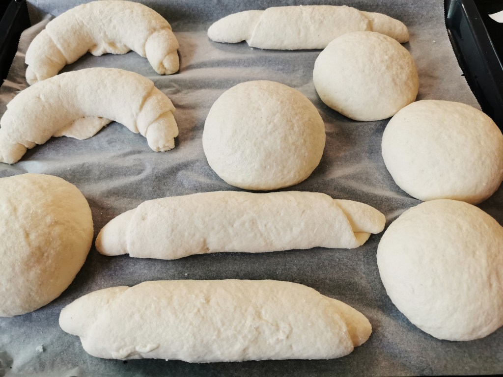 - Ebből a tésztából készülhet kenyér, bagett, gyökérkenyér, pizza, lángos, zsemle, kifli, sajtos stangli. Én most 10 egyenlő részre osztottam és zsemléket, kifliket, sajtos stanglit formáztam belőle.