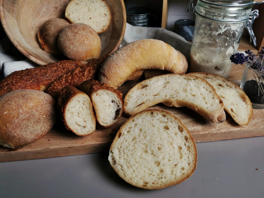 Kovász nélkül, élesztővel is elkészíthető a tészta. Ehhez az 50 g kovász helyett használjunk 25 g friss vagy 7 g szárított élesztőt. Készítsük el a megadott recept szerint az előtésztát, amit elegendő 1-2 órán keresztül pihentetni. A megformázott péksütemények kelesztési ideje is kevesebb, 1 óra meleg szobában bőven elegendő lesz.