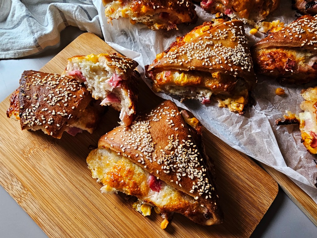 10 éve csomagolok, dobozolok tízórait, uzsonnát a cölis Sárámnak. 10 éve okoz komoly fejtörést, hogy mit tegyek az uzsonnás dobozba. Én éjszakai bagoly vagyok, szeretek este dolgozni, recepteket írni, átpörgetni a közösségi felületeket, a Facebook csoportomat, oldalamat, a tiktokot. Szeretem nyugodtan megválaszolni a felmerülő kérdéseket, cserébe rettenetesen későn fekszem le, aminek az az ára, hogy reggel nehezen kelek. Ezért amit lehet, már este a másnapi uzsis dobozba készítek, de a legpraktikusabbak azok a csomagolni valók, amiket este, lefekvés előtt kikapok a fagyóból és úgy, ahogy van, beteszem a dobozba. Ez a sajtos, sonkás, kukoricás háromszög pontosan ilyen. Hétvégén megsütöm, ahogy kihűl, rögtön megy a fagyasztóba és ott várja a sorsát.
