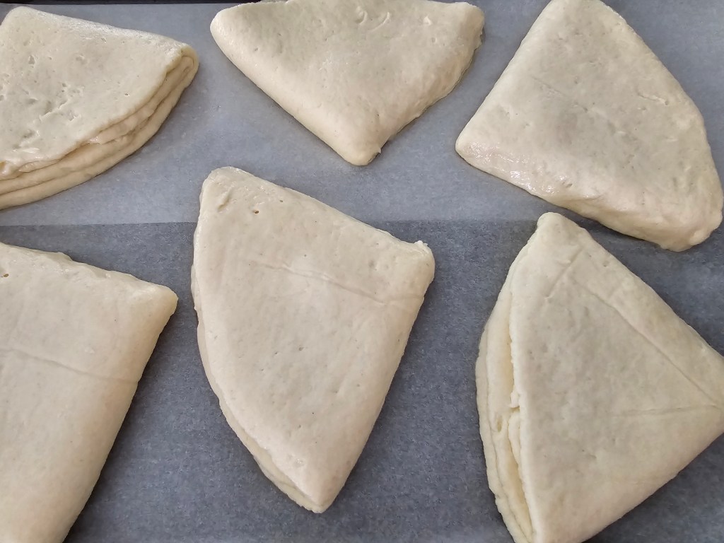 - Az összes bucit hajtogassuk meg és tegyük sütőpapírral bélelt tepsibe.