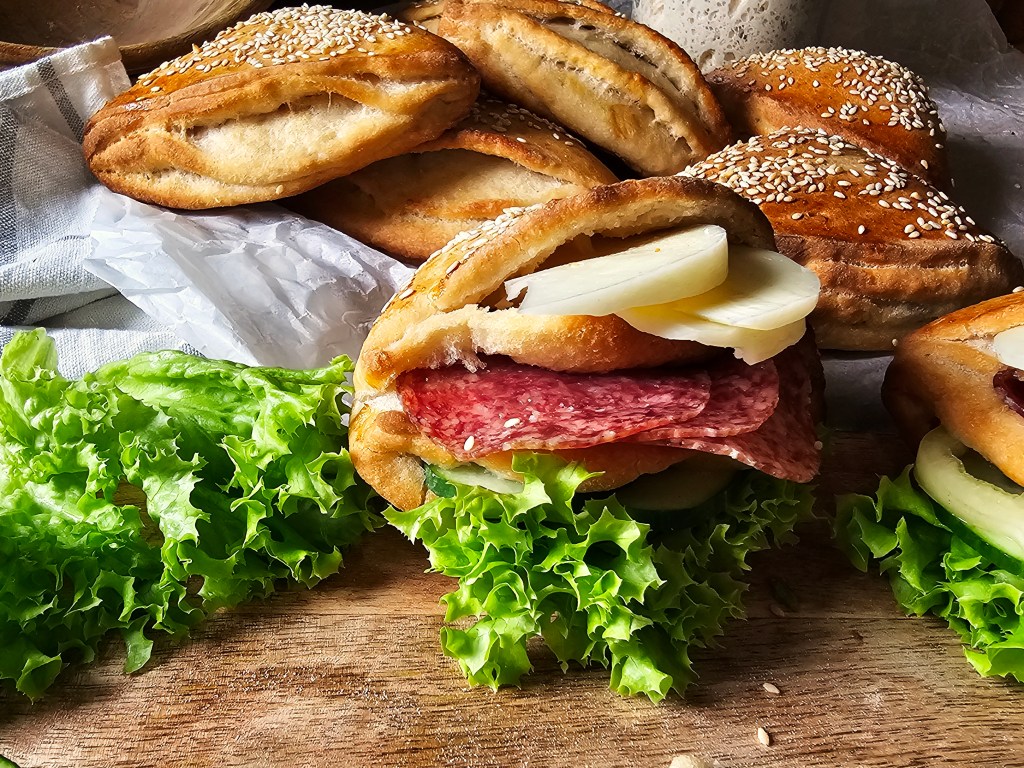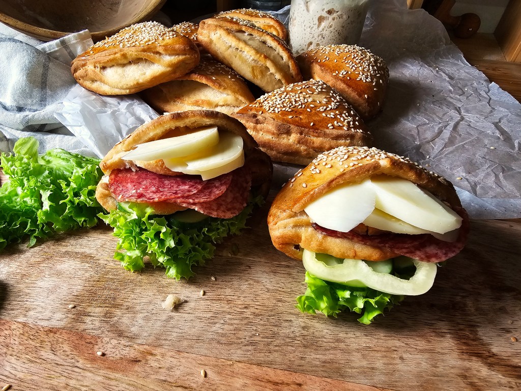 Meglátni és beleszeretni, abszolút egy pillanat műve volt. Ti éreztetek már ilyet? Mikor megpillantod, másodpercek alatt fut végi a látvány az összes idegpályádon: a légzésed felgyorsul, az arcod kipirul, szaporábban ver a szíved, gombócot érzel a torkodban, az összes pihe libabőrős lesz a karodon, tarkódon, remeg a kezed, a lábad és oltári hatalmasat kordul a gyomrod. Én pont ezt éreztem, mikor Gábor, a Házi Pék Facebook oldalán szembe jött velem a zsebes zsemléből készült szendvics. A következő másodpercben realizáltam a helyzetet: igen, ez nekem tabu, a tiltott szerelem. Ó, azok a tiltott gyümölcsök a legédesebbek és ezek teszik izgalmassá a konyhában eltöltött perceket, órákat. Imádom az igazi kihívásokat, az ösztön hajt, hogy megkaparintsam az elérhetetlent, a tiltott gyümölcsöt, ami a konyhámban alakul át és lesz számomra is elérhető végeredmény. Itt rögtön igen magasra emeltem magam előtt a lécet, hiszen Gábor hihetetlen gyönyörű zsemléit nem csak a gluténtől mentesítettem, de élesztőt sem használtam hozzá, hiszen az hónapok óta nem található meg a konyhámban, mióta a másik szerelmem, vagyis a kovász rabja vagyok. Így lettek ezek a zsebes cuccok gluténmentesek és kovászosak.