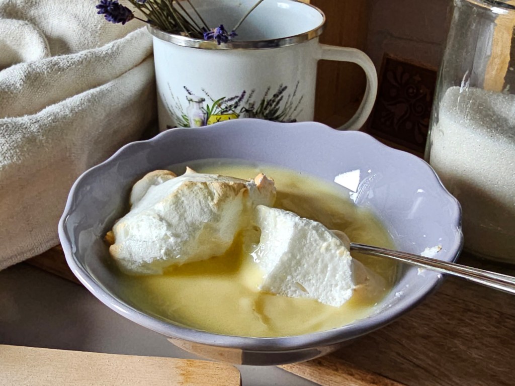 Ahány ház, annyi madártej. Eredetileg egy klasszikus francia desszert, tojások a hóban néven jelent meg recept formájában először, majd később, Amerikában úszó szigetek néven jegyezték fel. Ez mondjuk inkább egy felnőtt verzió volt, hiszen az alapja cseresznyepálinkával átitatott piskóta volt. Maga a tojáshab számtalan módon készíthető: van, ahol nyersen tálalják, mások vízfürdőben, vagy tejben főzik. Az utóbbi években igen elterjedt a mikróban készült hab recept. Számomra a legtökéletesebb és egyben a legegyszerűbb sütőben sütve villámgyorsan. A sütős hab tudott engem lebilincselni és hihetetlen szintre emelte az egyszerű madártej fogalmát. Mikor csodálatos felhőket láttam gyerekként az égen, sokszor elképzeltem, hogy óvatosan belefekszem, elsüllyedek a puha habban, majd megkóstolom. Ma, mikor a számba vettem a krémes alapot egy falat habbal, gyönyörű felhőket láttam. A széle enyhén ragacsos, pont annyira, hogy jólesően tud lenyalni a szád széléről, a belseje pedig maga a felhő. A kamaszom, aki eddig kizárólag a sárga, krémes alapot ette üresen, hab nélkül, ma hosszas unszolásra megkóstolta, és kétszer repetázott belőle.