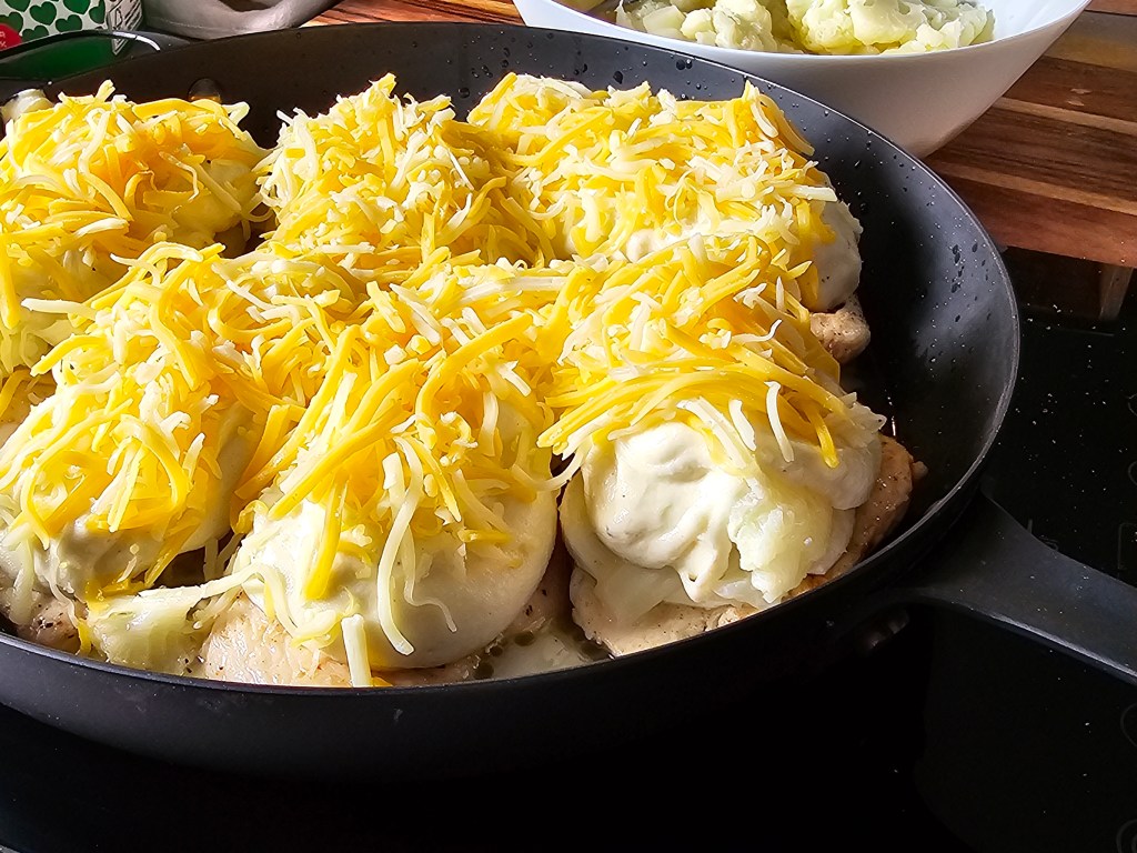 - Tálaljuk a pürét a karfiolos csirkemellel.