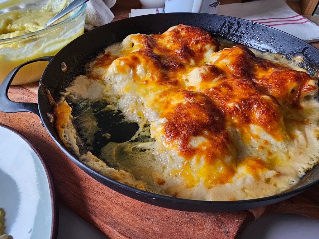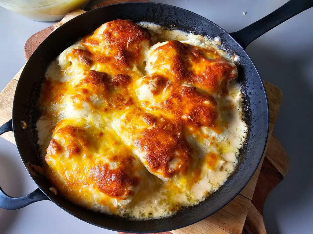 Na vissza a Dubarryhoz. Amire nagyon figyelni kell: a csirkemell legyen vékony, de ne hajszál, mert könnyen kiszárad, szóval villámgyorsan süssük csak körbe, hogy egy kérget kapjon, de ne száradjon. A sütőben majd szépen omlósra sül. A karfiolból nem püré készül, szóval ne főzzük túl, roppanjon, mert pont így lesz tökéletes. A jó besamelmártás alapja a vaj, természetesen, ha tejmentes diétán vagy, akkor használj hozzá növényi alternatívákat, de a szerecsendiót ne sajnáld, mert attól lesz pikáns. Ha igazi sajt függő vagy, keverj a mártásba is nyugodtan reszelt sajtot. Arra viszont figyelj, hogy elég sűrű legyen a szósz, különben lefolyik a karfiol darabokról. Én a hús és a karfiol közé karikáztam némi mozzarellát, mert imádjuk.