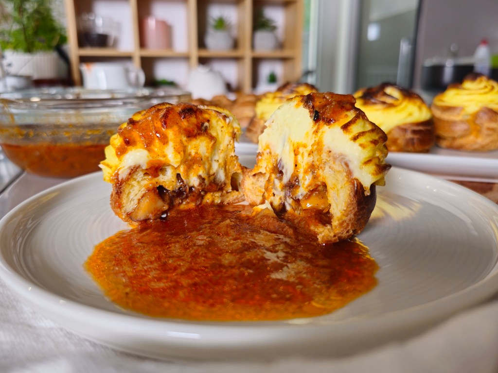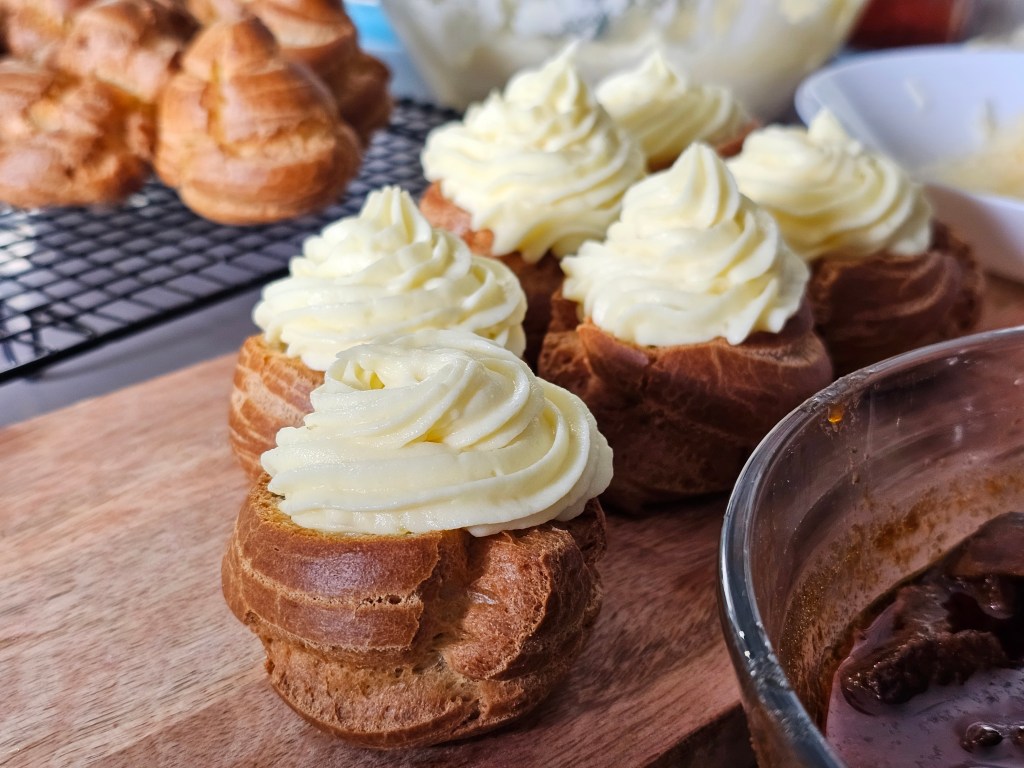 Ha előrelátó vagy és legalább két legyet szeretnél ütni egy csapásra, akkor készíts rögtön dupla adag égetetett tésztát, így pillantok alatt kerülhet a desszert is az ünnepi asztalra. Az égetett tészta teljesen semleges ízű: se nem sós, de nem is édes. Ez az alapja a képviselőfánknak, profiterolnak, Ekler fánknak, churrosnak. A churros annyiban különbözik az előbb említettektől, hogy forró olajba nyomva sütjük készre és még forrón, fahéjas cukorba forgatva tálaljuk. Mikor a ragut töltöd a kész tésztába, arra ügyelj, hogy a húsos, sűrű részét töltsd az üreges tésztába, így garantáltan nem fog elázni az. A fenséges szaftját tálaláskor locsold a kész fánkokra. A tészta levágott kalapját véletlenül se dobd ki. Már töltés közben tunkolj vele a sűrű szaftból. Arra figyelj, hogy ezt észrevétlenül végezd, így több jut neked, ki az időt nem sajnálva prezentálod az ünnepi ételt.