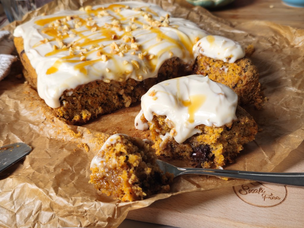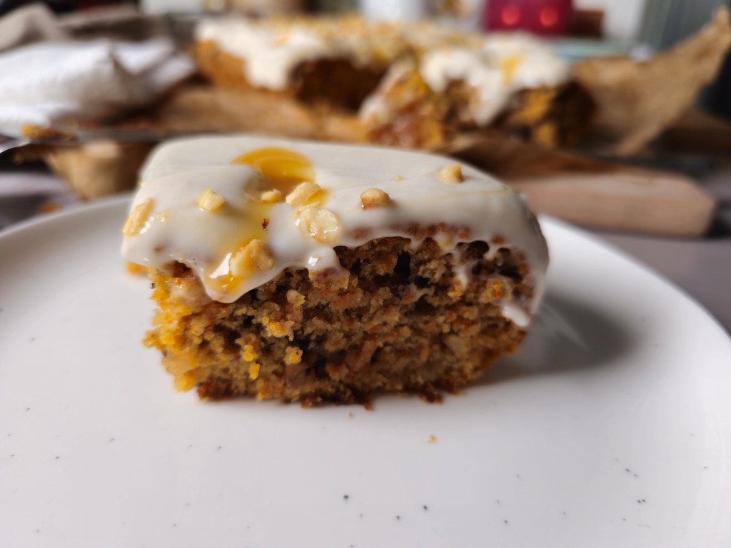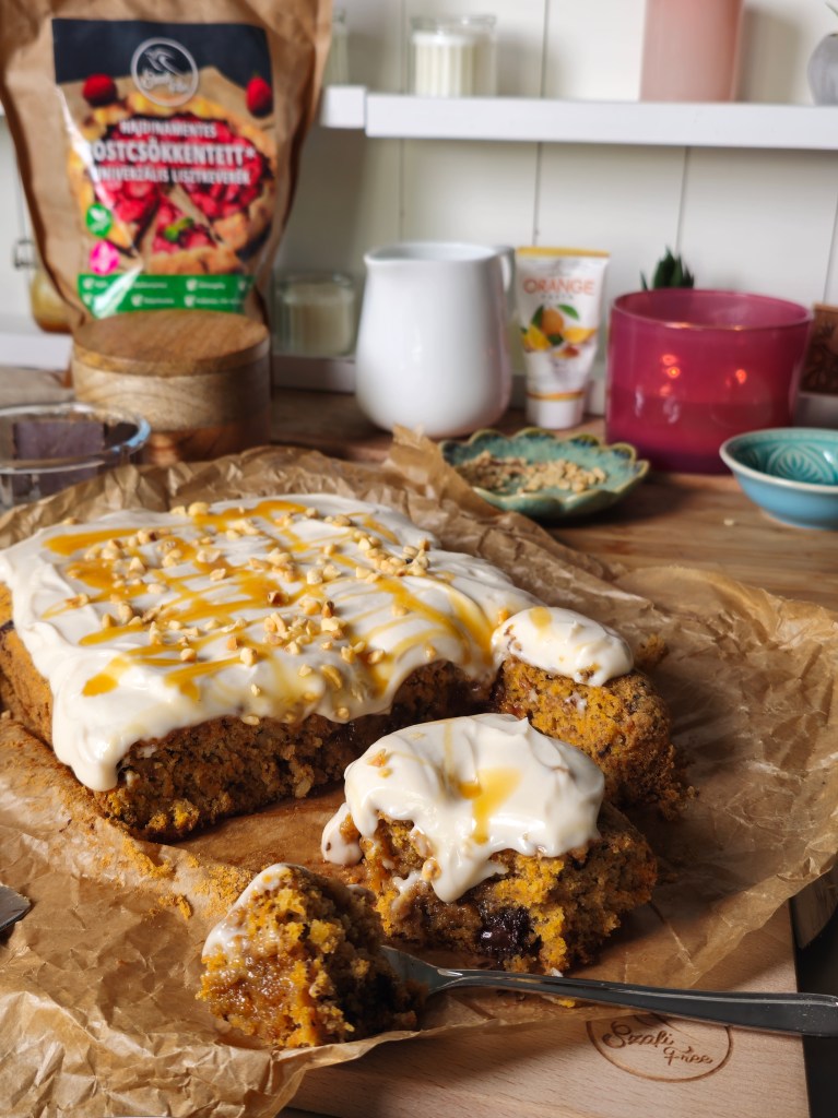 Szerencsére nincs törvénybe vésve, hogy répatortát csak és kizárólag húsvétkor lehet sütni és enni. Nézd meg a karácsonyi verziót, ami félelmetesen jó, ráadásul nem csak gluténmentes, hanem vegán is. Eszméletlen szaftos és garantáltan senki nem fogja megmondani róla, hogy nincs benne glutén, tej és tojás sem. Cserébe diétásnak nem nevezném, meg a torta alapot alaposan megfurkáltam és az így keletkezett lyukacskákat jól megtöltöttem krémes karamell öntettel. Simítottam a tetejére növényi mascarponéból kavart igazán egyszerű krémet. Annyira pofon egyszerű maga az alap, hogy még keverőgépet sem kell elővenni hozzá. A répa reszelésével véletlenül se bajlódj, csak darabold bele egy késes aprítóba és pár másodperc alatt tökéltes az állaga. Minden hozzávalót keverj nemes egyszerűséggel össze egy spatulával, tetézd némi aprított mogyoróval, rusztikusra darabolt csokival és már sülhet is.