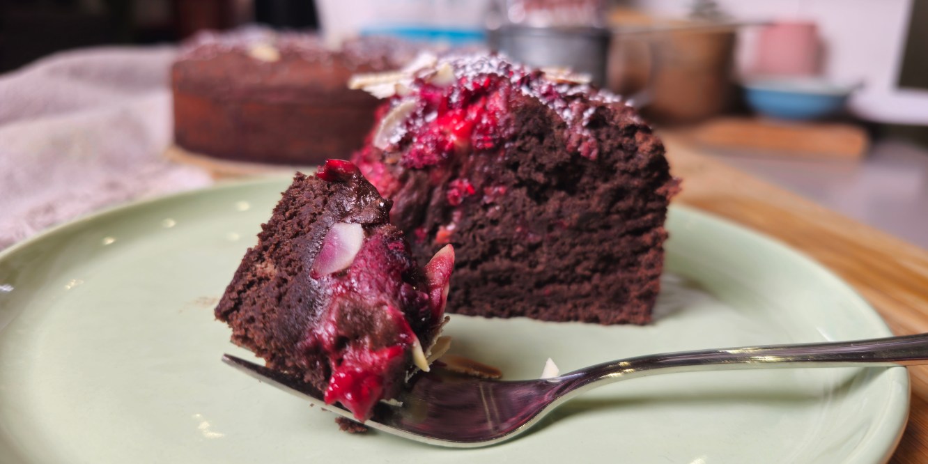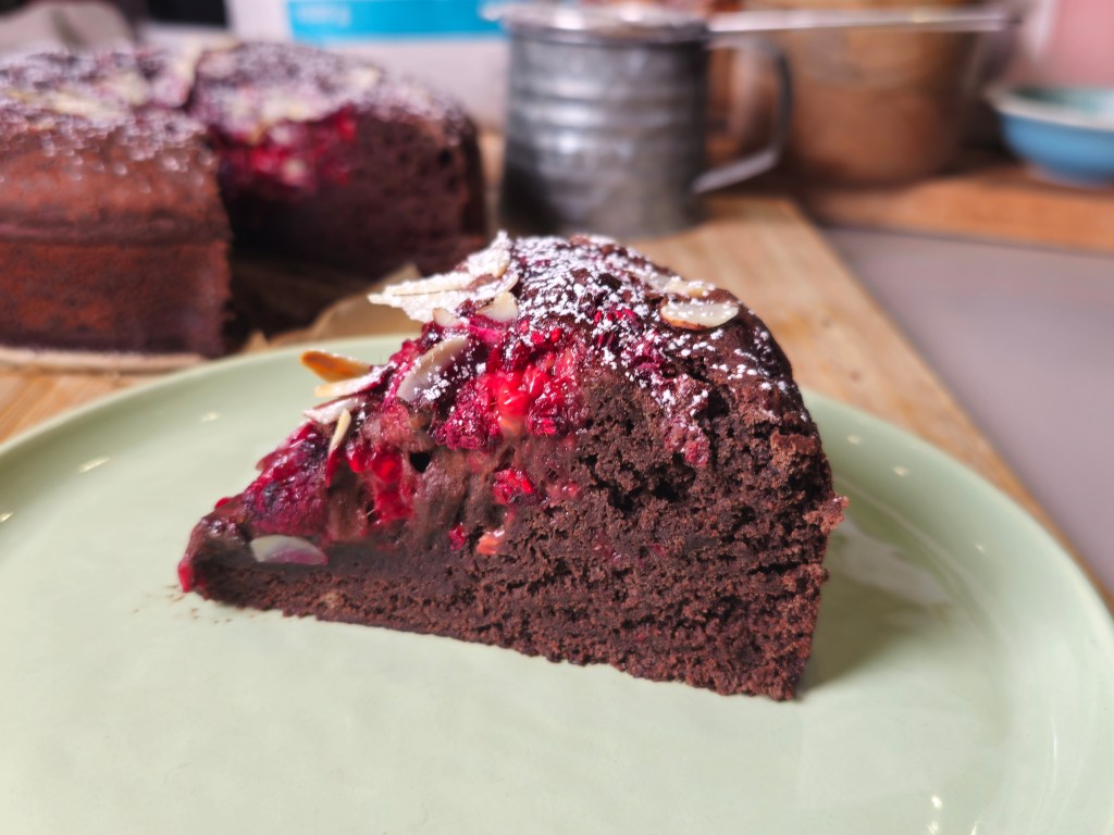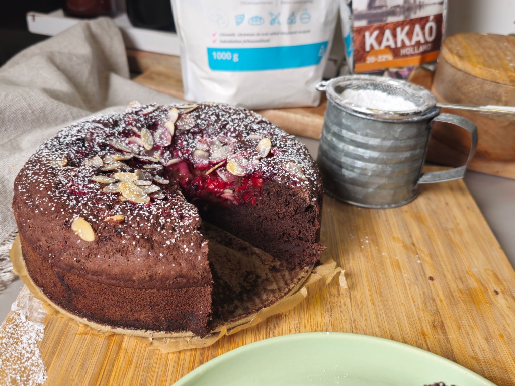Véleményem szerint, a kakaó és a málna legyőzhetetlen páros, ez a kevert tészta pedig pontosan két perc alatt állítható össze, a többi pedig a sütő dolga. Alakítsd az alapot abszolút a te ízvilágodnak megfelelően. Ha tortát szeretnél belőle készíteni, egyszerűen hagyd ki a málnát, a mandulát és töltsd meg a kedvenc krémeddel. De turbózhatod egyéb gyümölcsökkel, csoki darabkákkal is. Fogyaszd így, ahogy van magában, vagy kend meg lekvárral, esetleg kínálj mellé fagyit.
