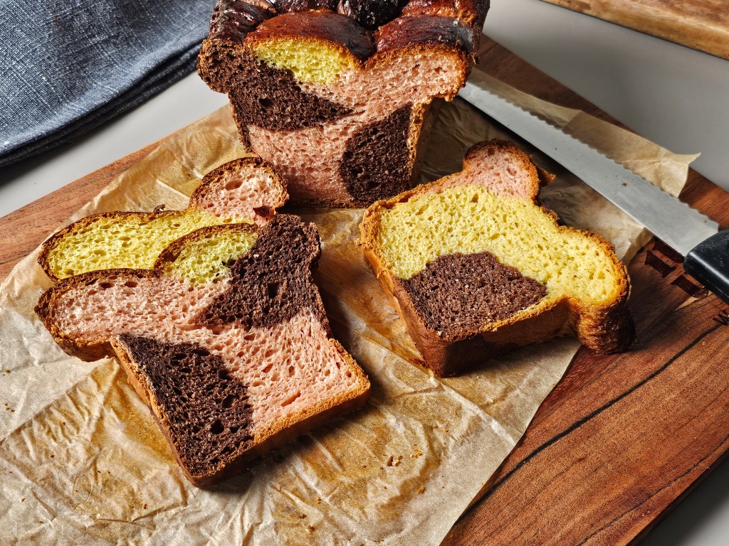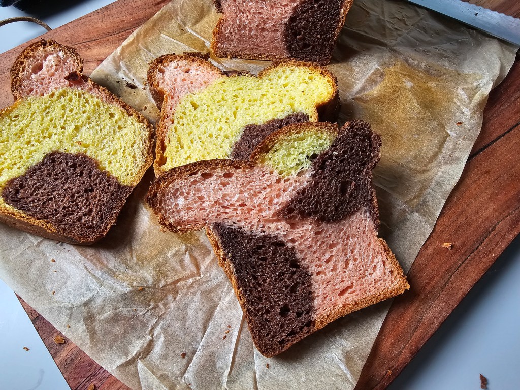- A megdagasztott tésztát osszuk három egyenlő részre és dolgozzunk bele mindegyik részbe 1-1 csomag pudingport. Itt is érdemes géppel dolgozni, hogy a tészta tökéletesen egynemű legyen.