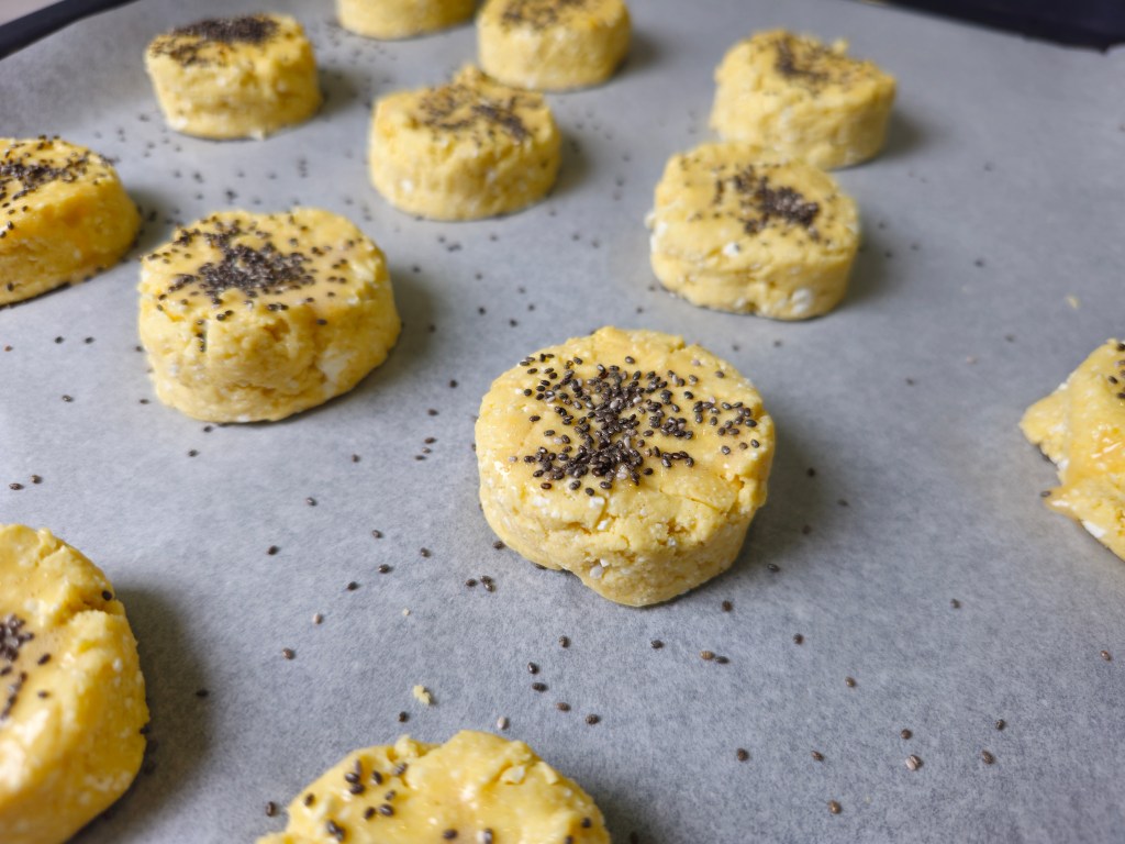 Sütöttem magamnak a húsvéti sonka mellé olyan túrós, sajtos pogácsát, ami igen kevés szénhidrátot tartalmaz. Az íze fantasztikus lett, de sütés közben némi átalakuláson mentek keresztül. Legközelebb egész biztos, hogy nem fecsérelem az időt a szaggatással, hanem nemes egyszerűséggel feldarabolom teljesen random módon. Szóval tekints el az alakjuktól és mindenképp süsd meg. A tészta összeállítása 3 percet vesz igénybe, a nyújtása pikkpak kész van és ha nem vacakolsz a szaggatással, akkor másodpercek alatt a tepsibe kerül. Süsd ropogósra és dugd el a család többi tagja elől. Én így tettem.