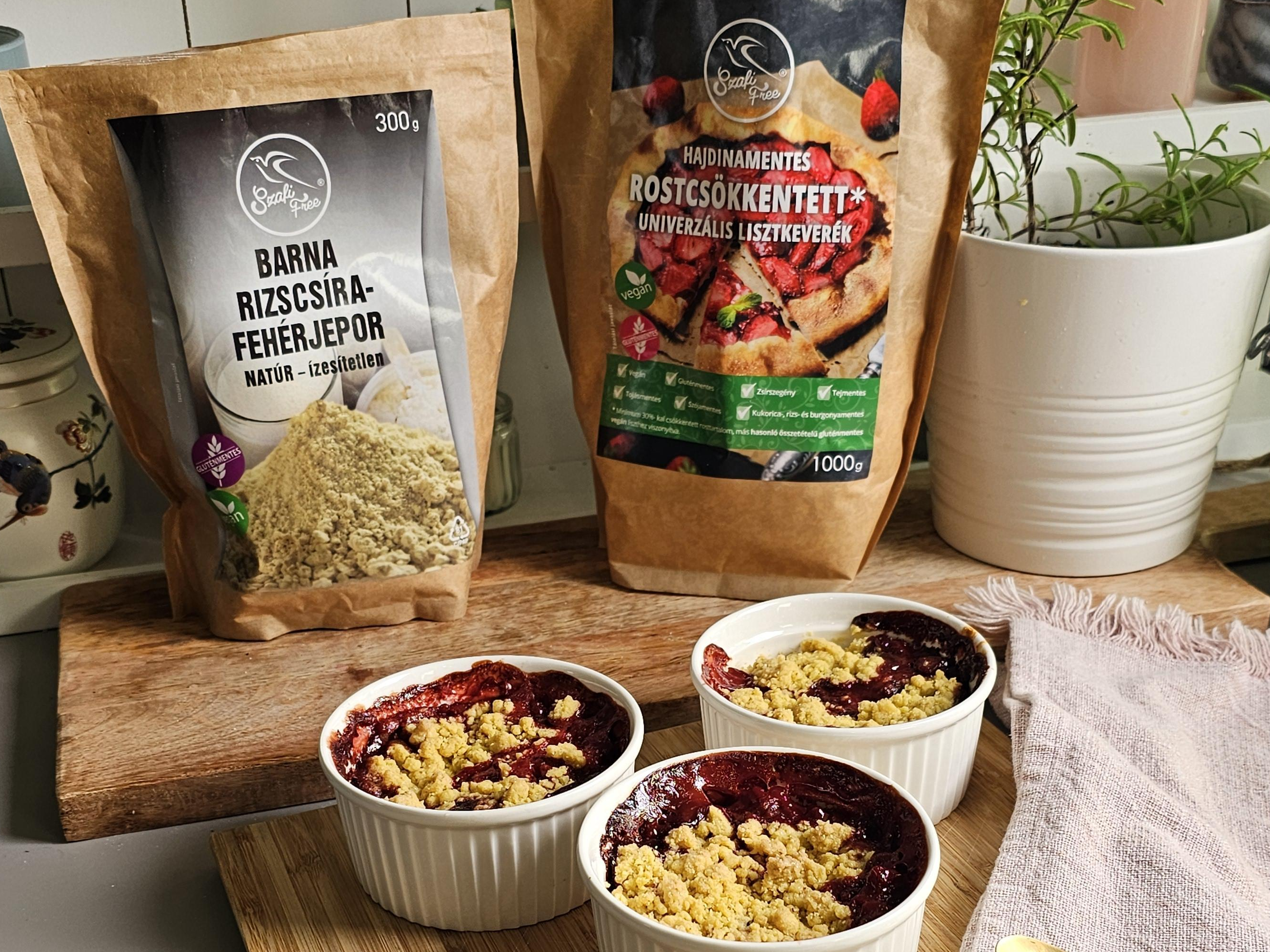 Az én verzióm most Szafi Free hajdinamentes rostcsökkentett univerzális lisztkeverékkel készült. Az epret Szafi Free natúr barna rizscsíra fehérjeporral kevertem össze és megszórtam kevés rusztikusra darabolt csokival.
