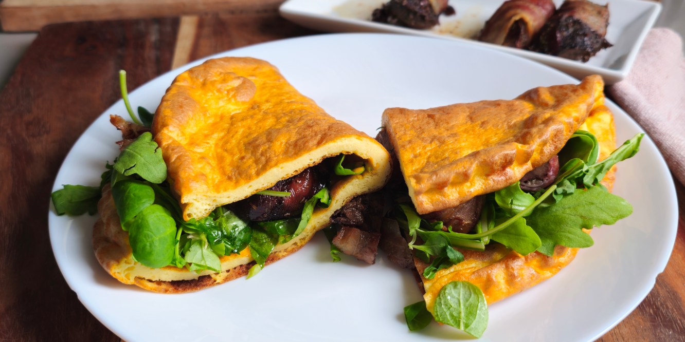 - A megsült májat vágjuk fel és friss salátával együtt pakoljuk a szendvics alap felére, majd tálaljuk félbehajtva.