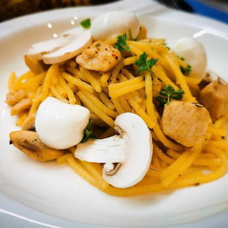 FOKHAGYMÁS CSIRKEMELL SPAGETTIVEL