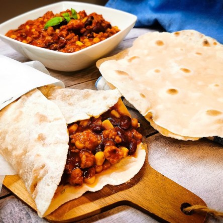 CHILIS BAB, HÁZI, GLUTÉNMENTES TORTILLA LAPOKKAL