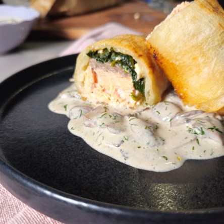 Wellington szeletre hajazó, bundás, gombás sertésszűz glutén- és tejmentesen