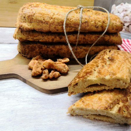 Glutén és tejmentes töpörtyűs pogácsa, rúd
